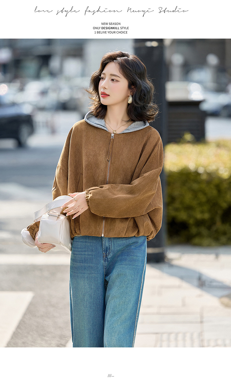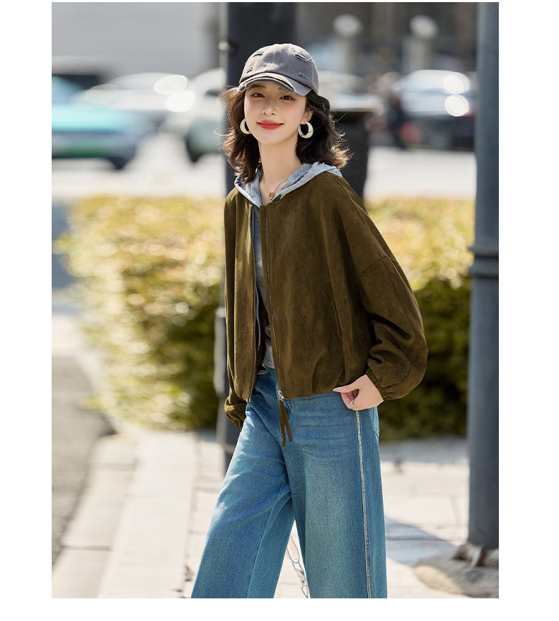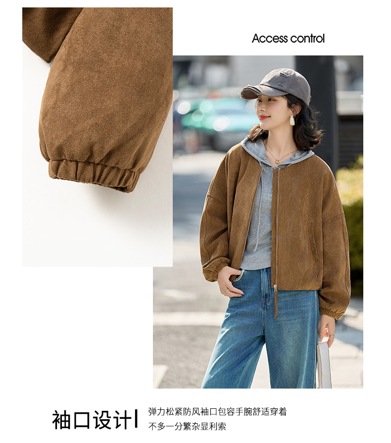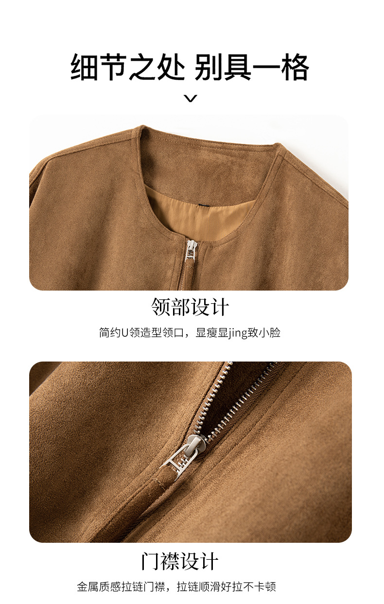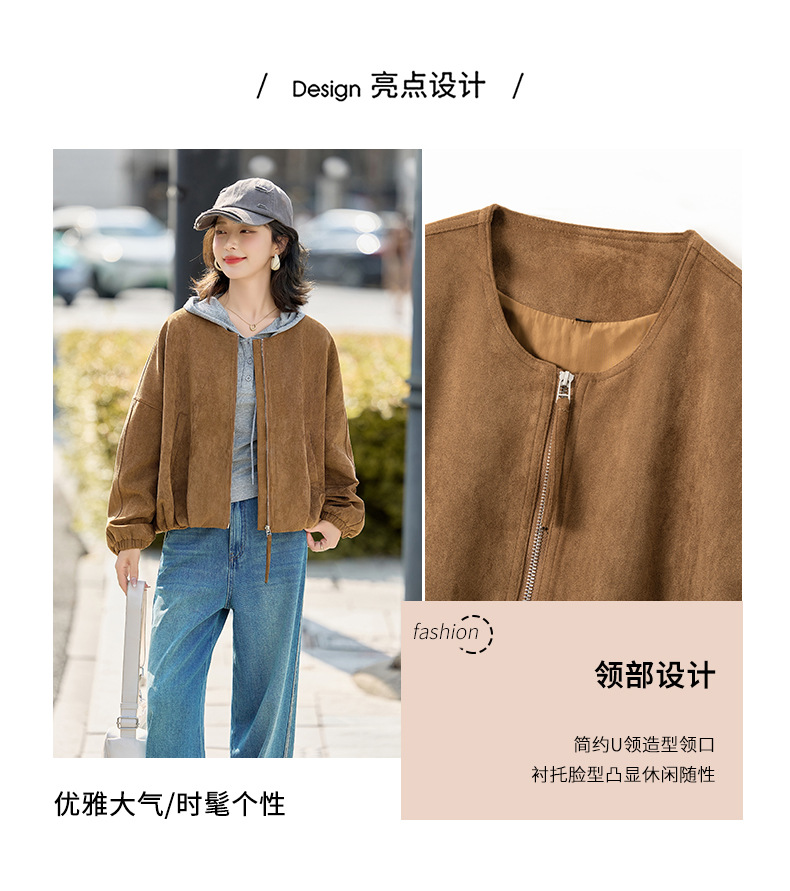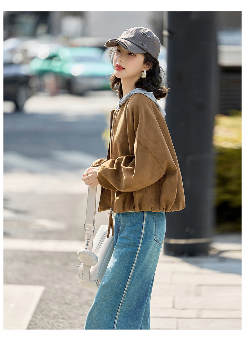 HR GSTX8092复古港风麂皮绒短外套宽松休闲长袖外套
