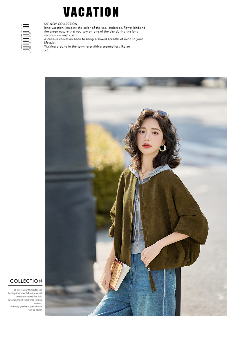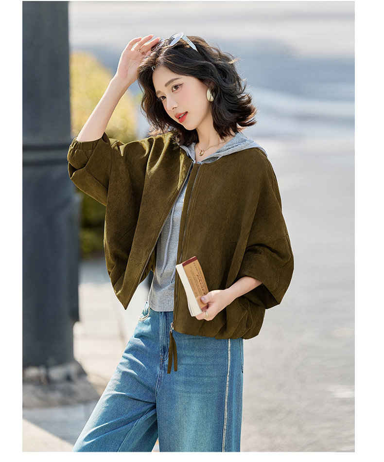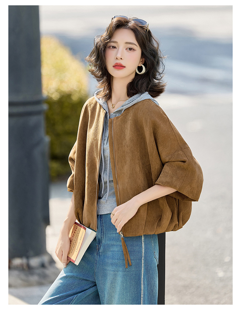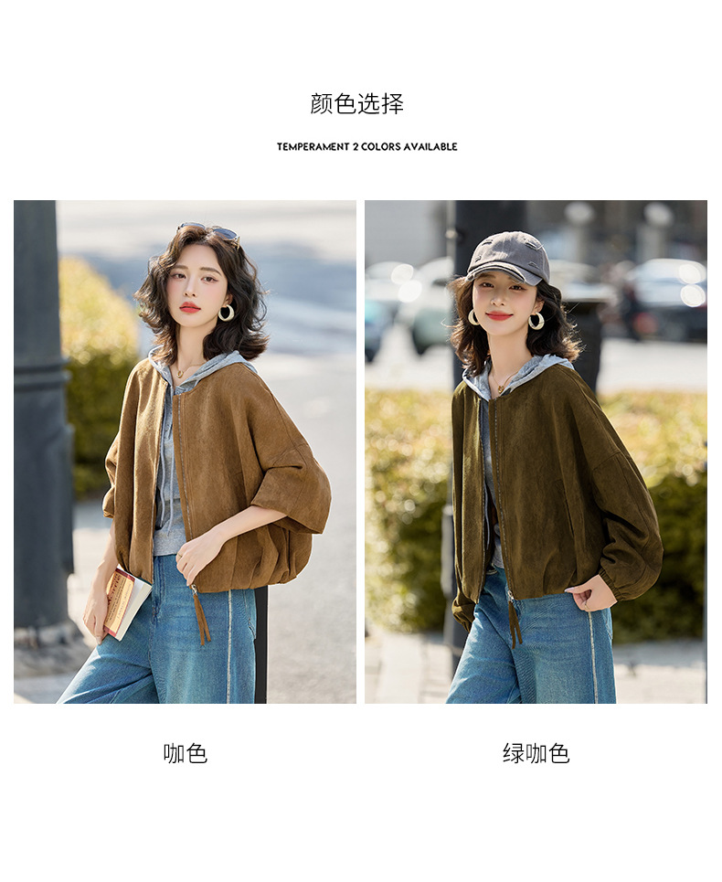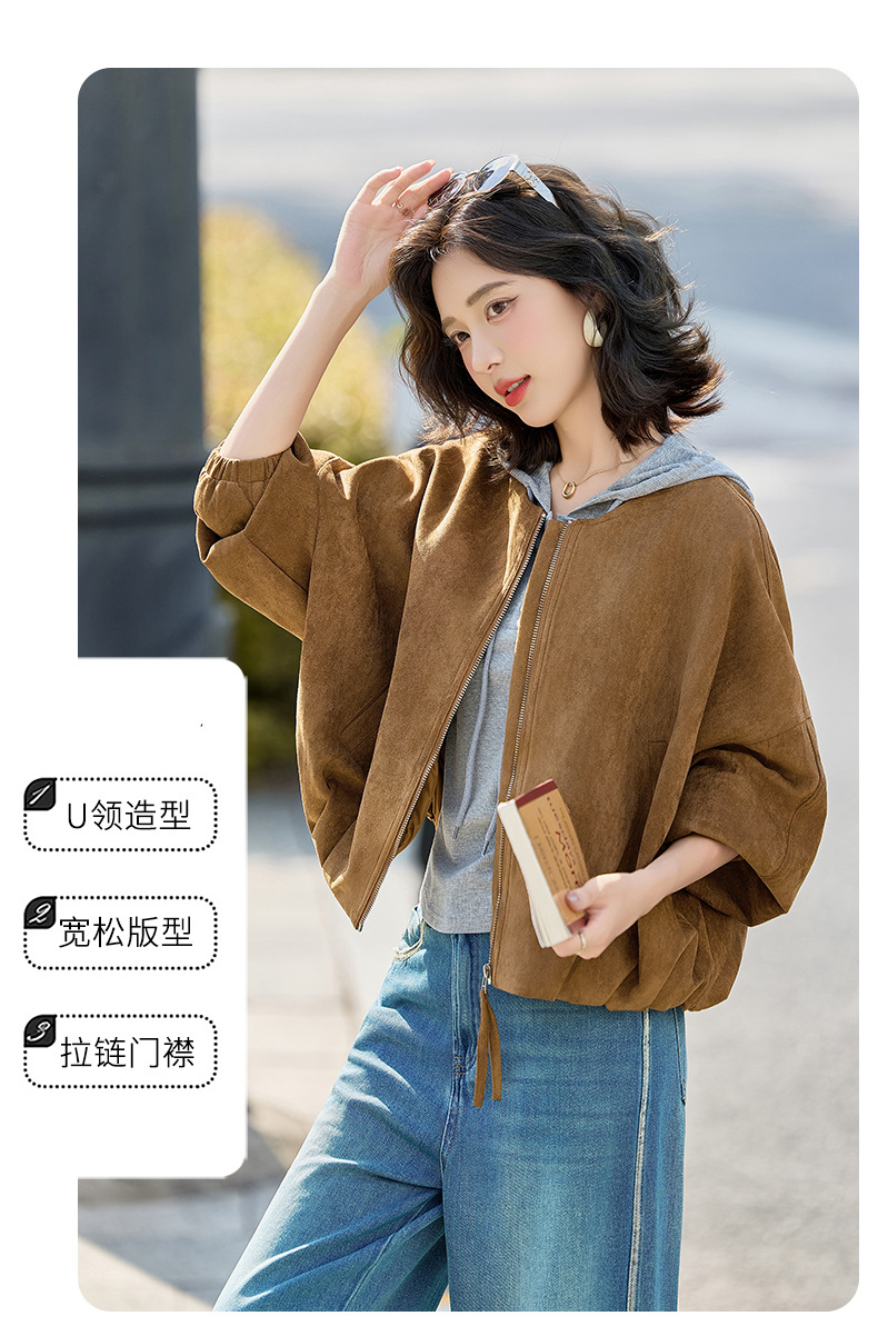 HR GSTX8092复古港风麂皮绒短外套宽松休闲长袖外套