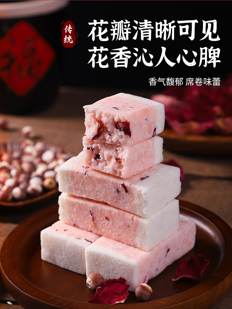 【老少皆宜!香气馥郁】网红爆款重瓣玫瑰芡实糕无蔗糖传统手工糕点心健康代餐零食品。xa