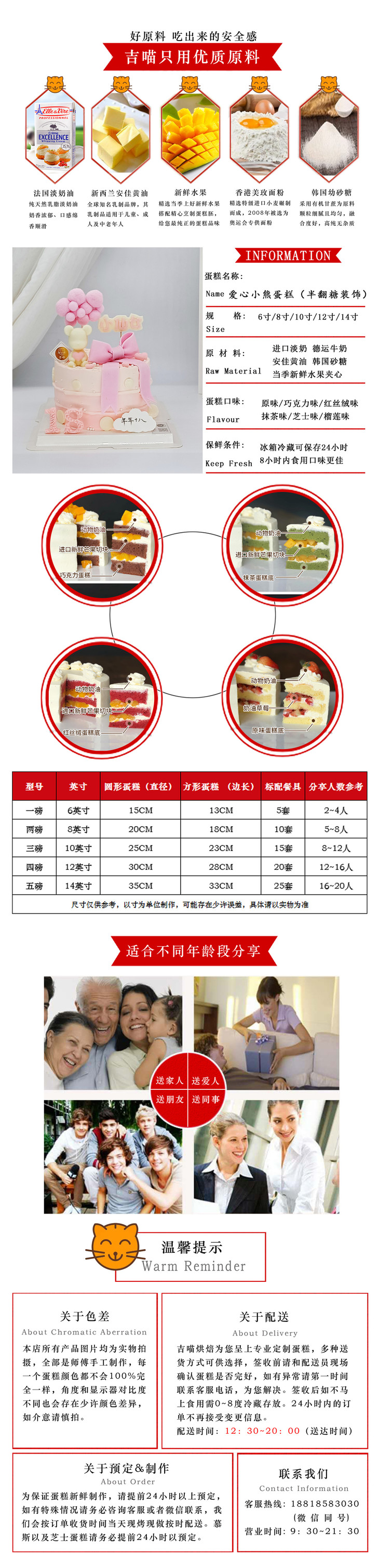 爱心小熊蛋糕(半翻糖装饰,数字可改)