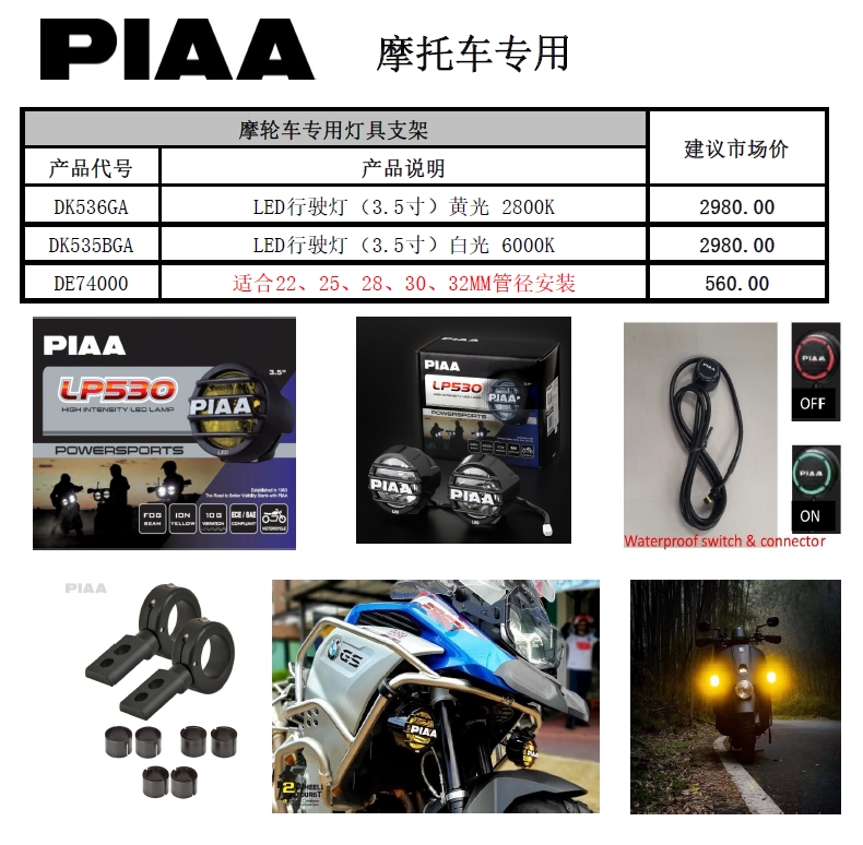 PIAA 机车 LED 支架套件|黄光白光3.5寸通用|防震防水 |CLAUTO酷乐汽车 x PIAA中国官方 No.250622