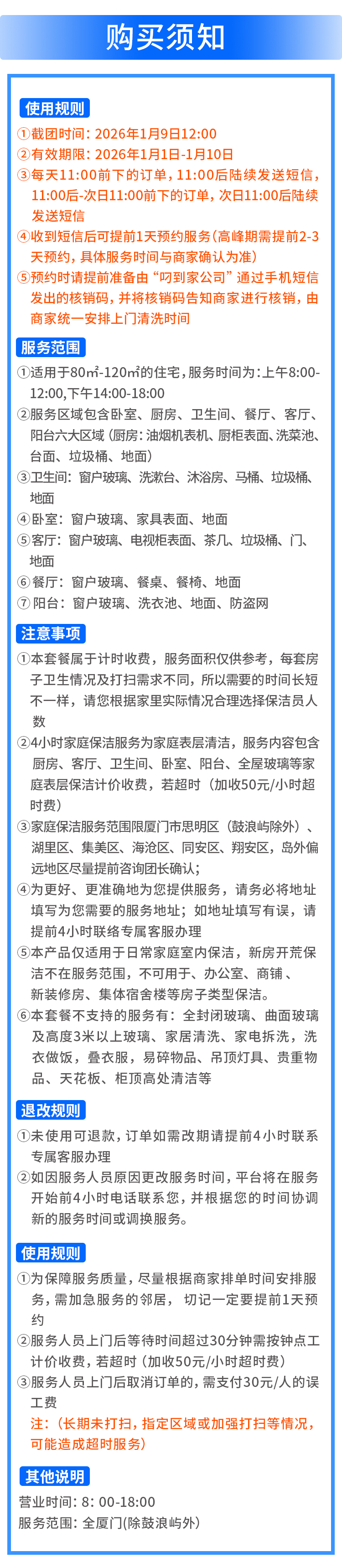 【有效期1月1日-10日】4小时80㎡-120㎡家庭保洁/1份(不限购,自建房可用)【叼生活】