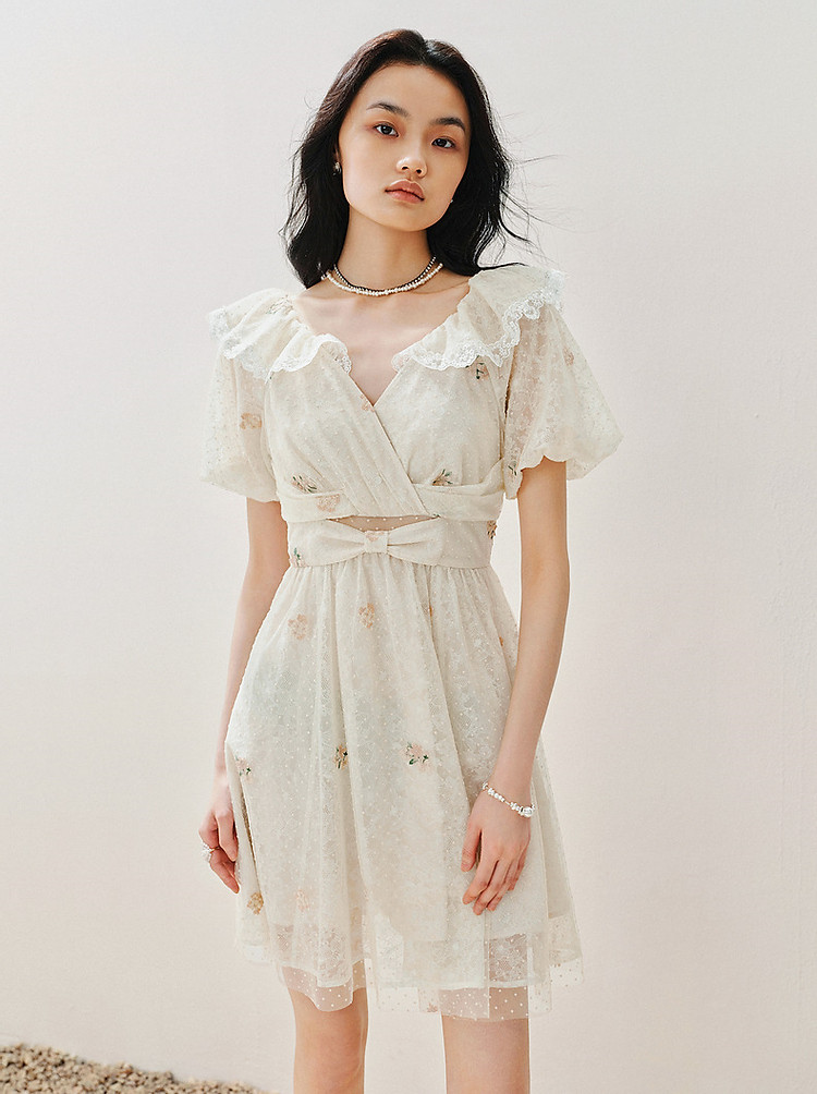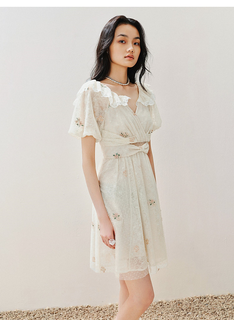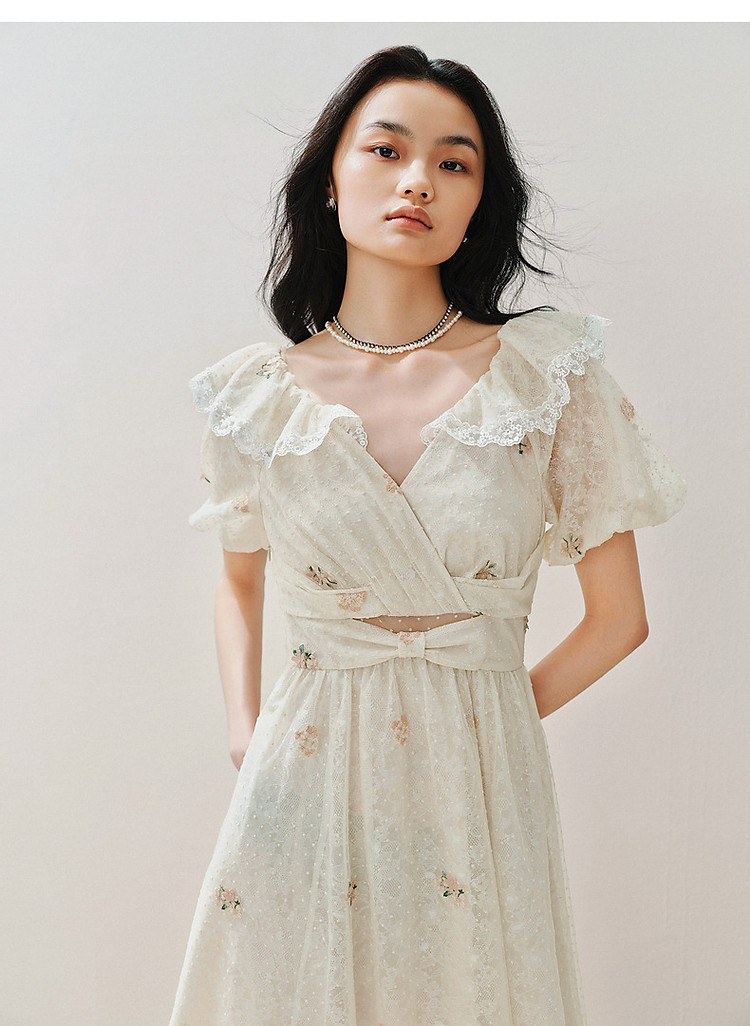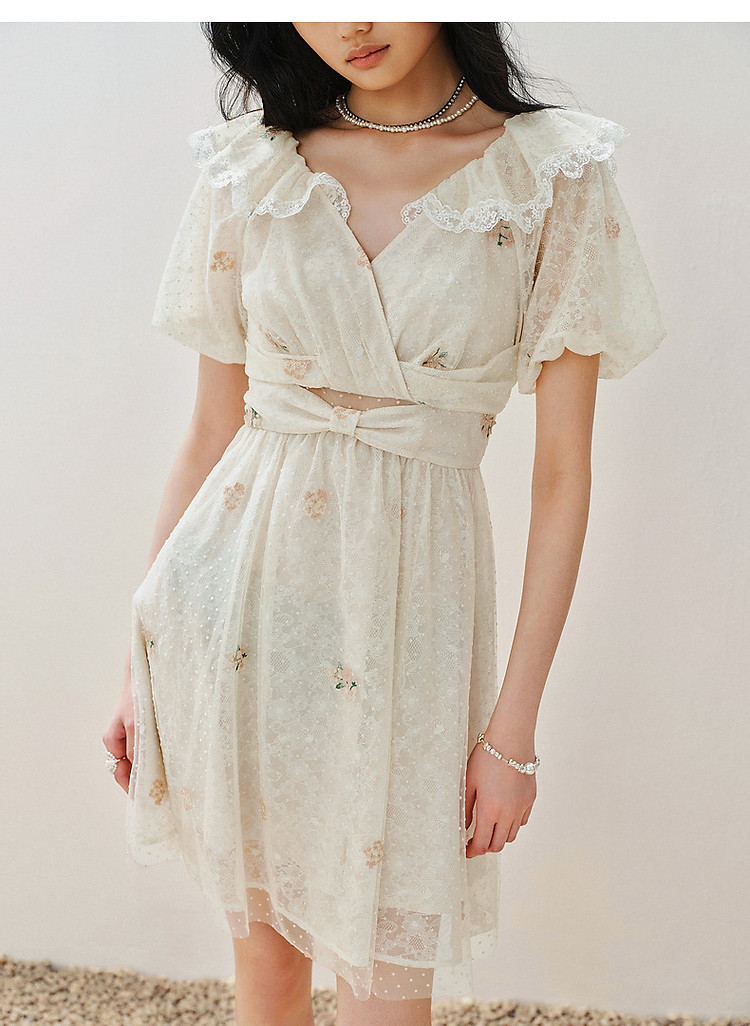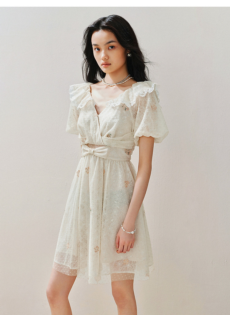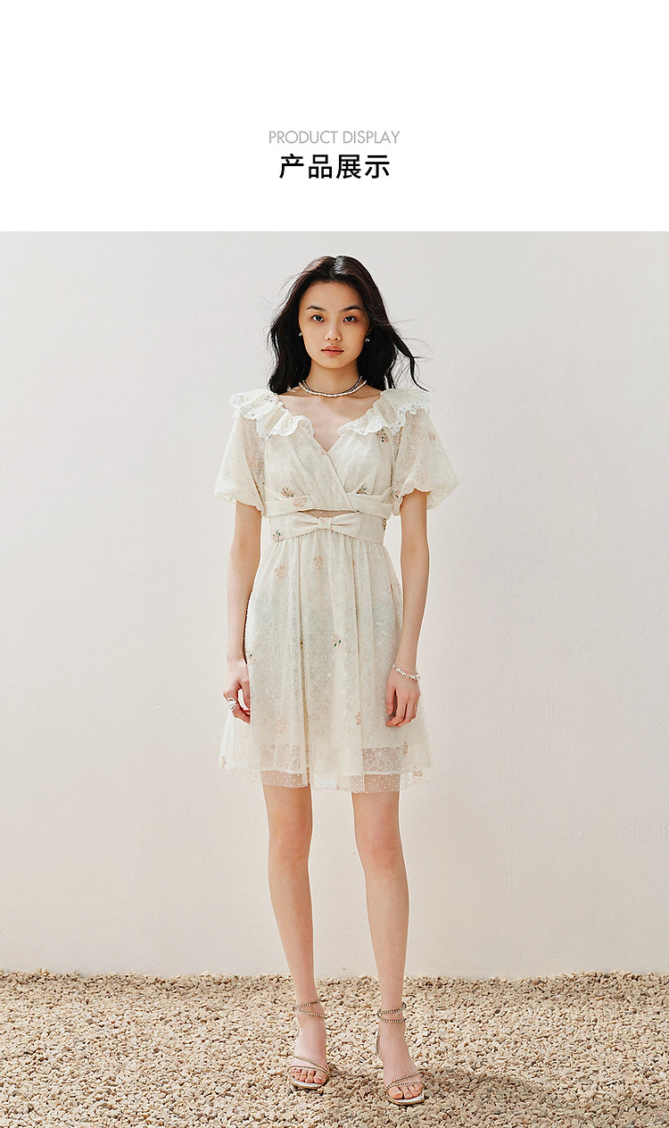 复古风荷叶边仙美连衣裙短款裙