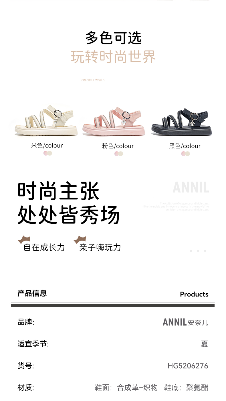 ANNIL/安奈儿夏季女童珍珠镶嵌仙女风外穿百搭休闲凉鞋2025夏款HG5206276