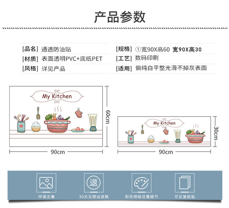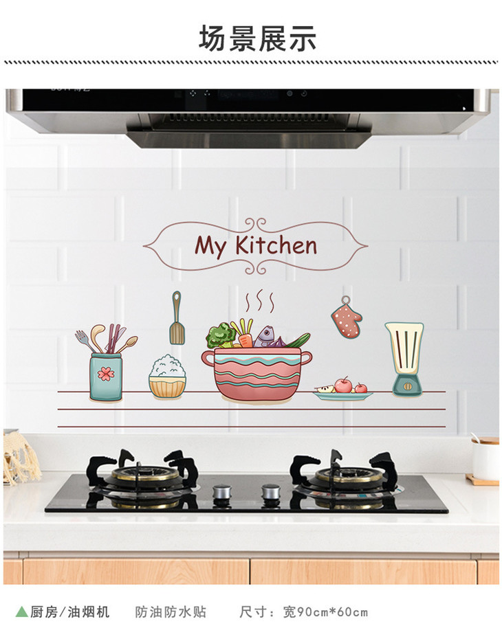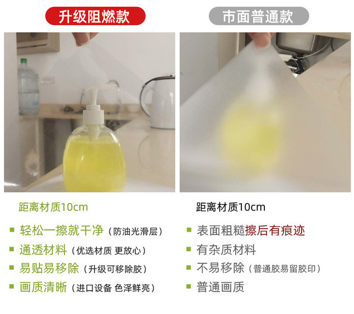 【墙纸】亿尧防水阻燃透明厨房橱柜瓷砖装饰墙贴灶台耐高温自粘防油贴纸
