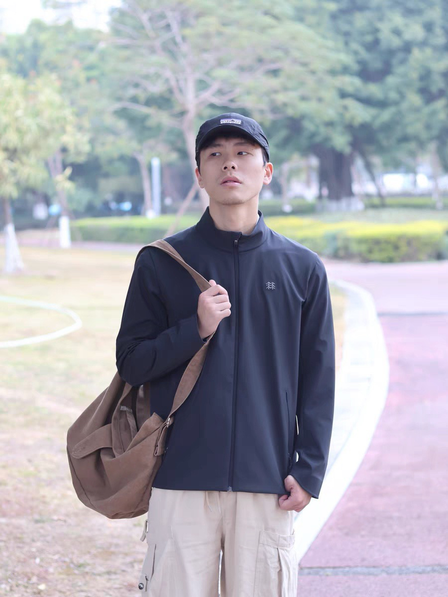 介于软壳和硬壳中间,适合春秋季穿,因版型简约不拖沓,冬季做冲锋衣内搭也很适合,不会臃肿占地方,一衣穿三季!