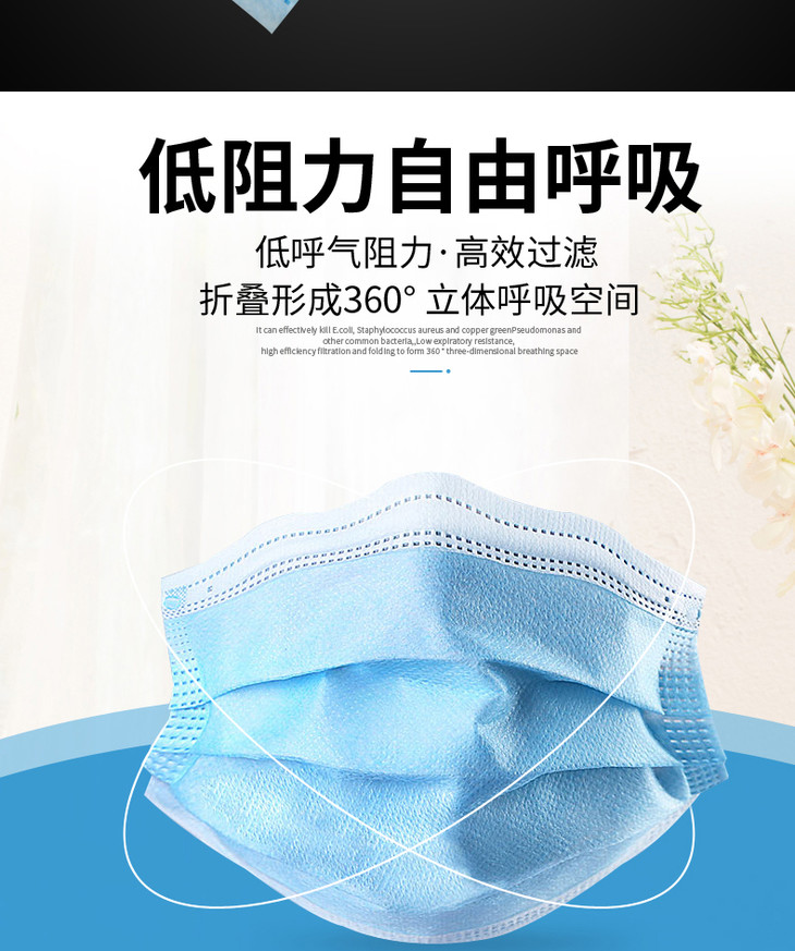 一次性防护口罩3层透气成人口罩阻隔飞沫粉尘防雾霾50片