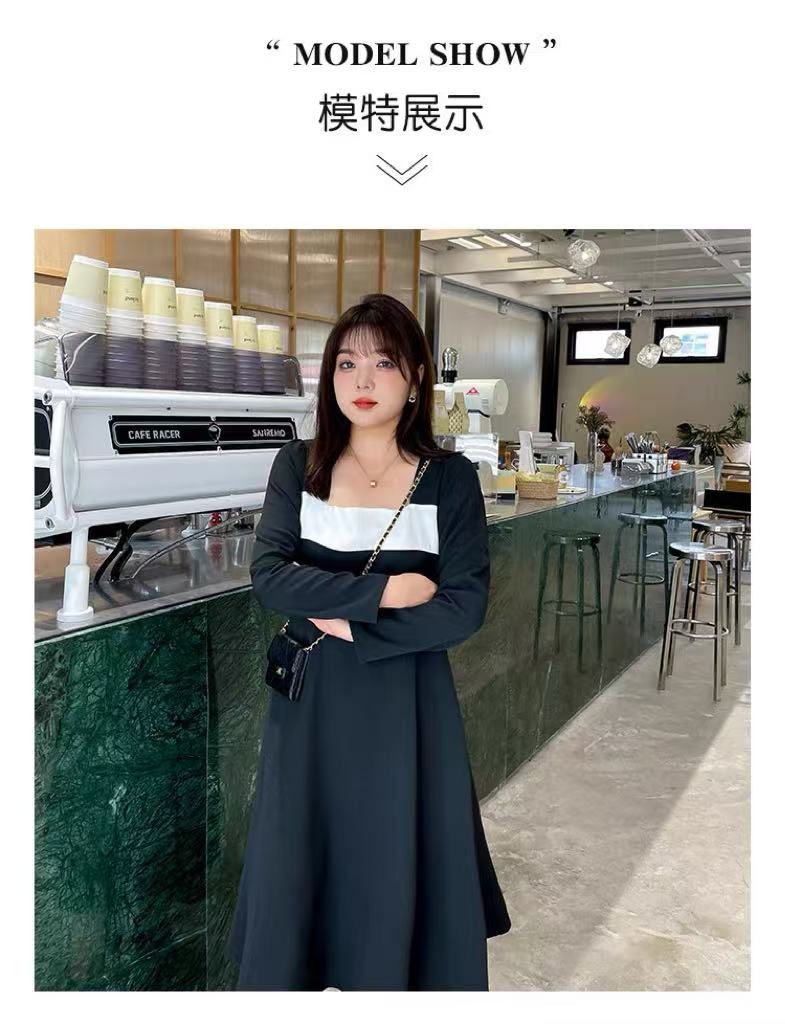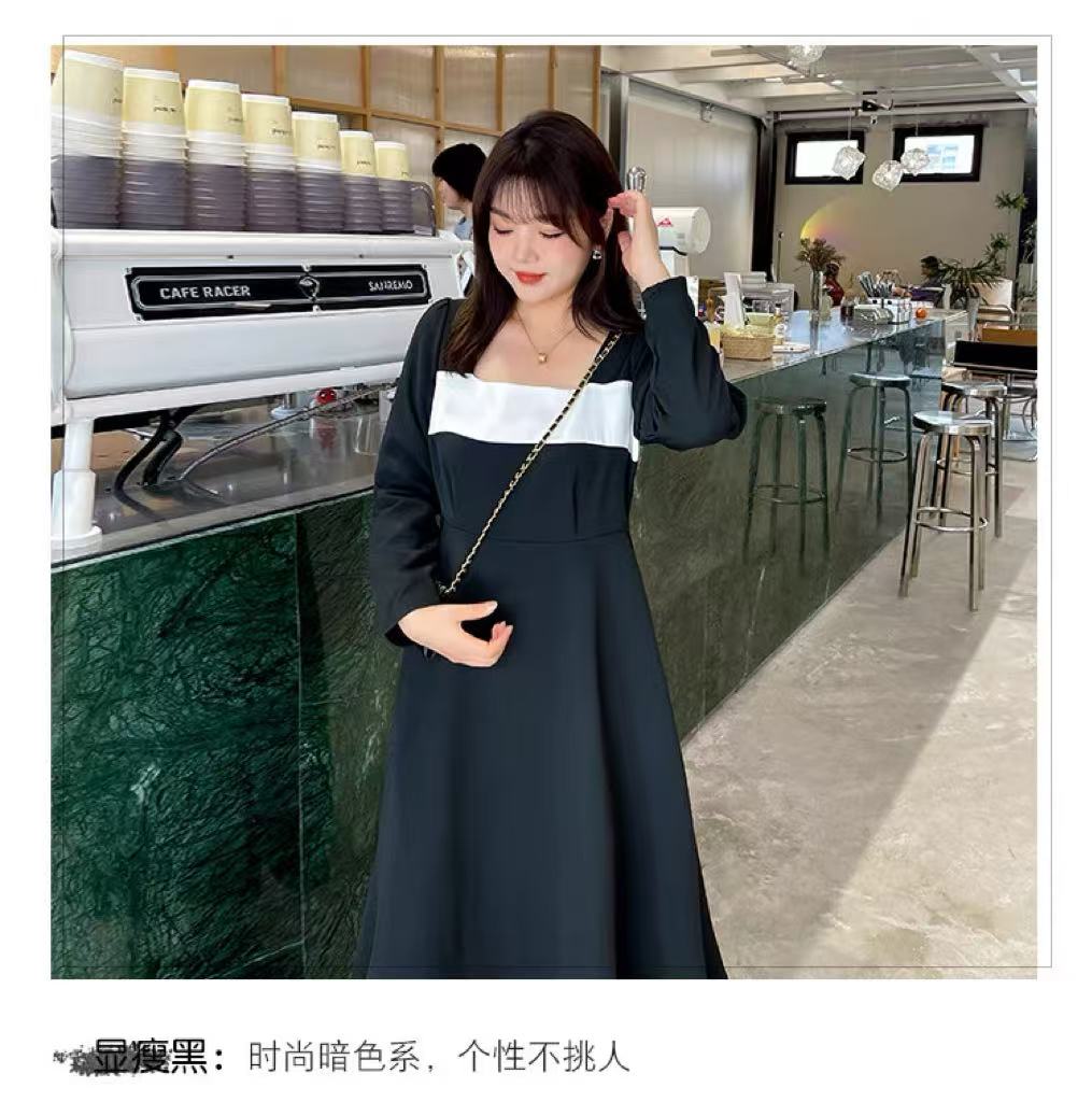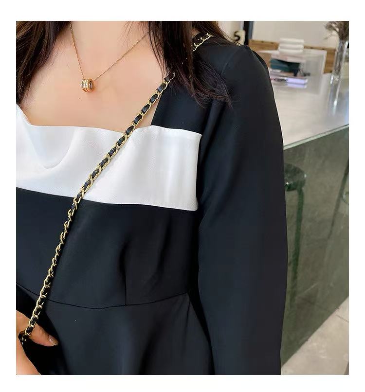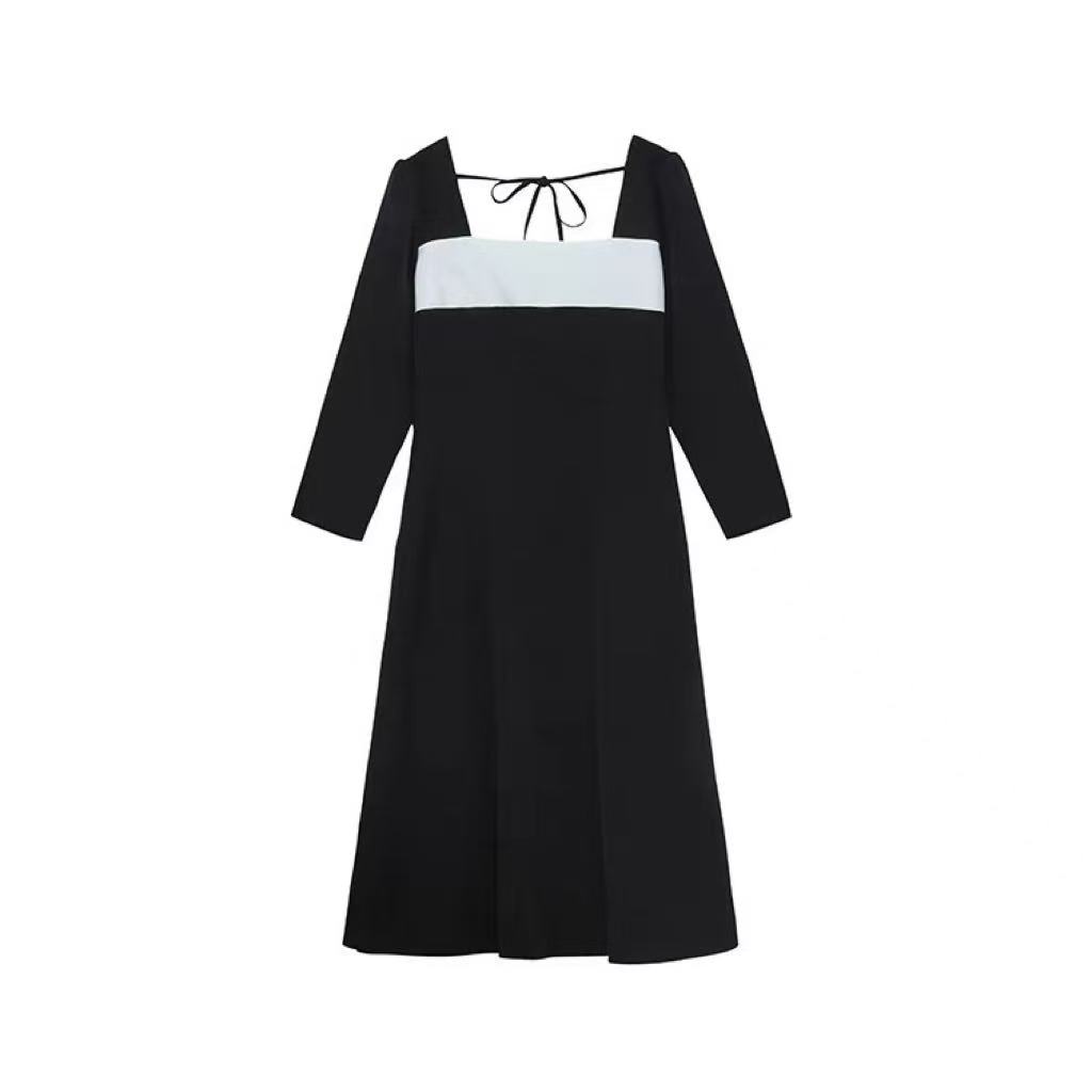 超值购【诗铭洛可】W637撞色连衣裙黑白撞色长袖裙A8-1