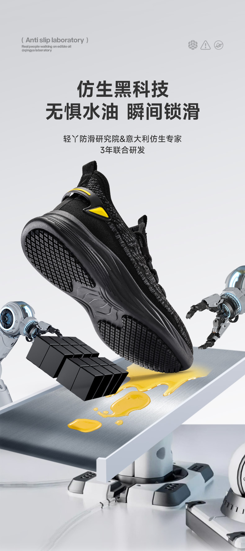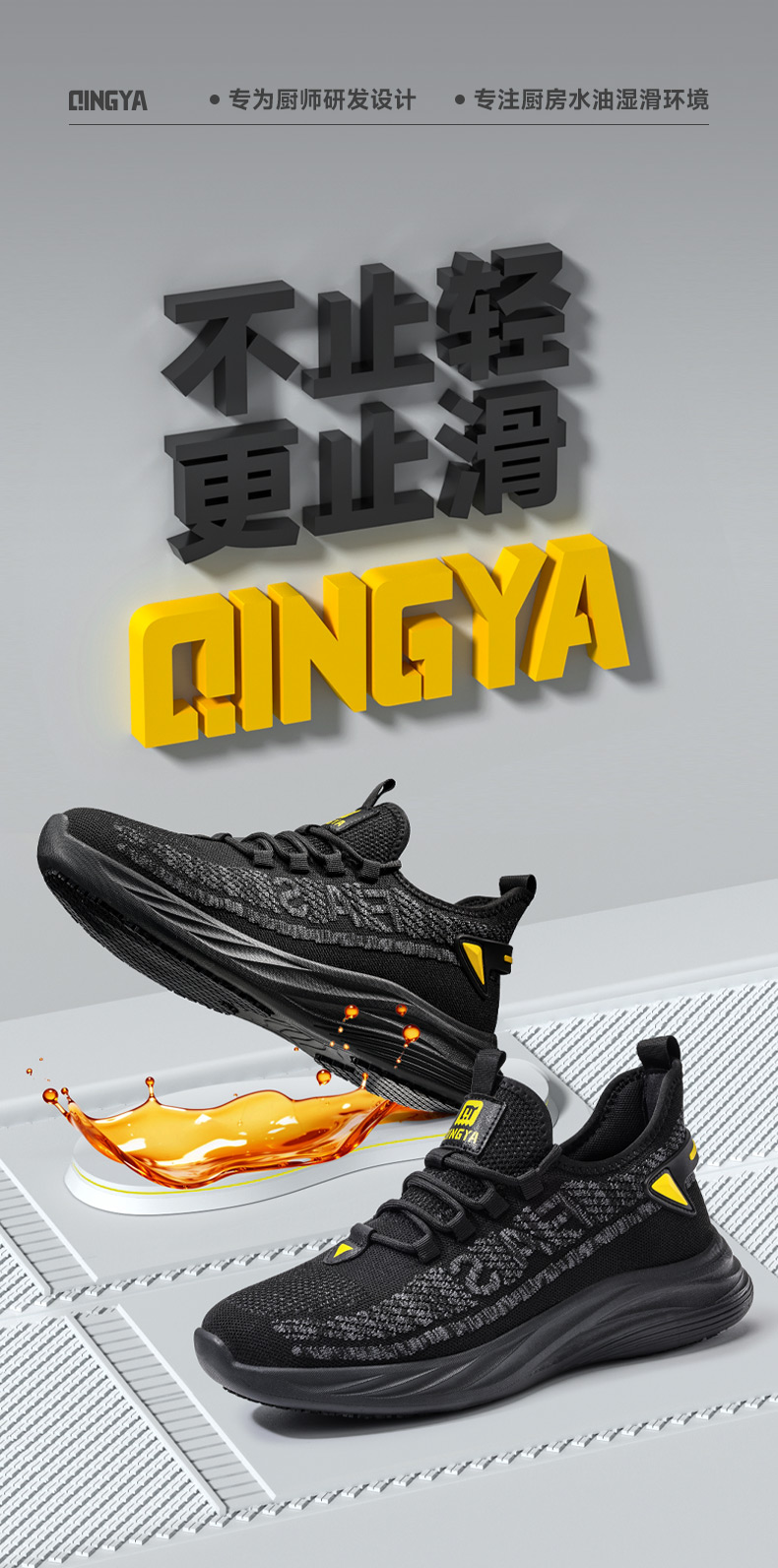 新款轻丫厨师鞋运动系列防滑SRC无包头无中底 实心MD底飞织网布四季款劳保鞋