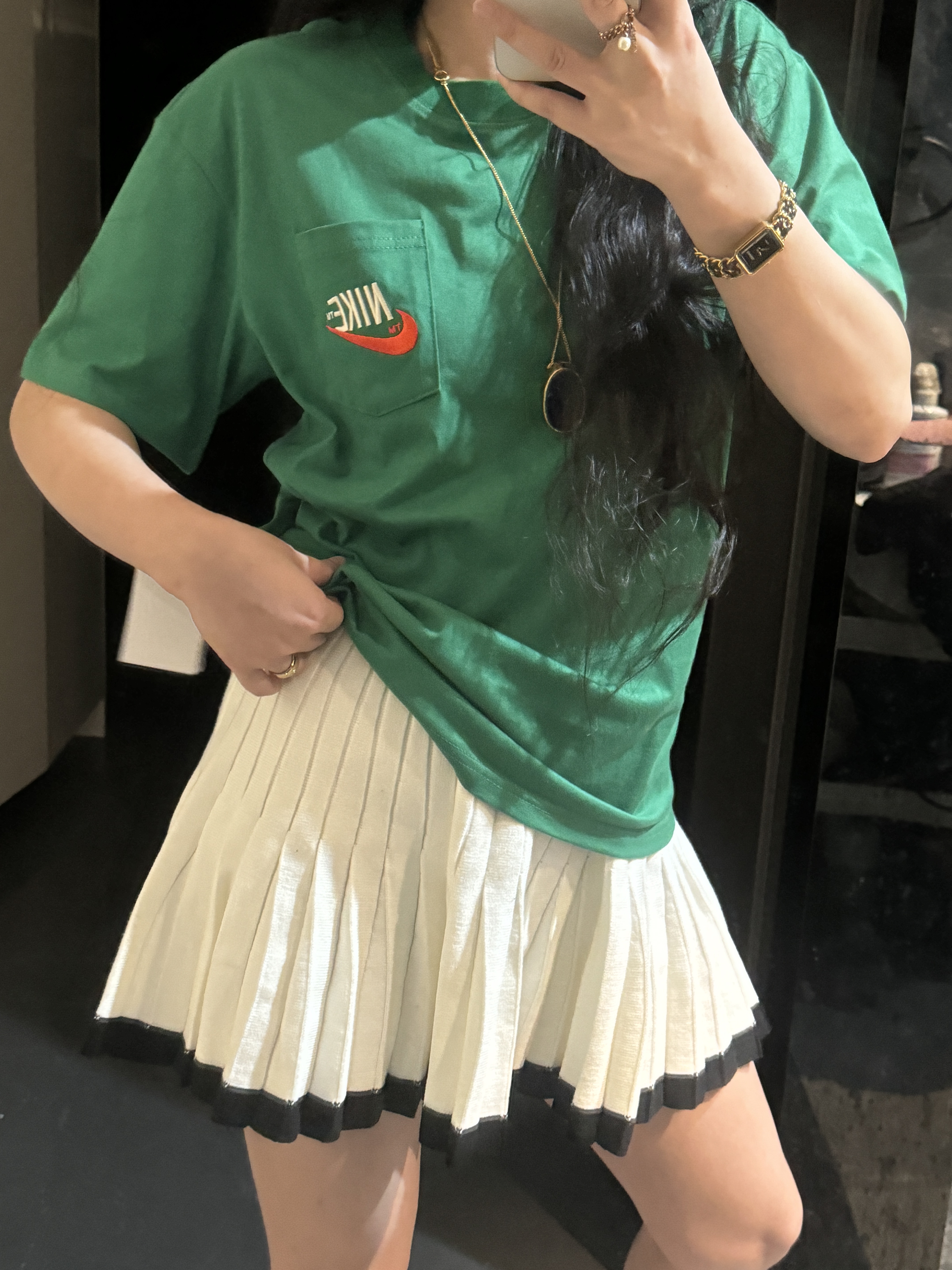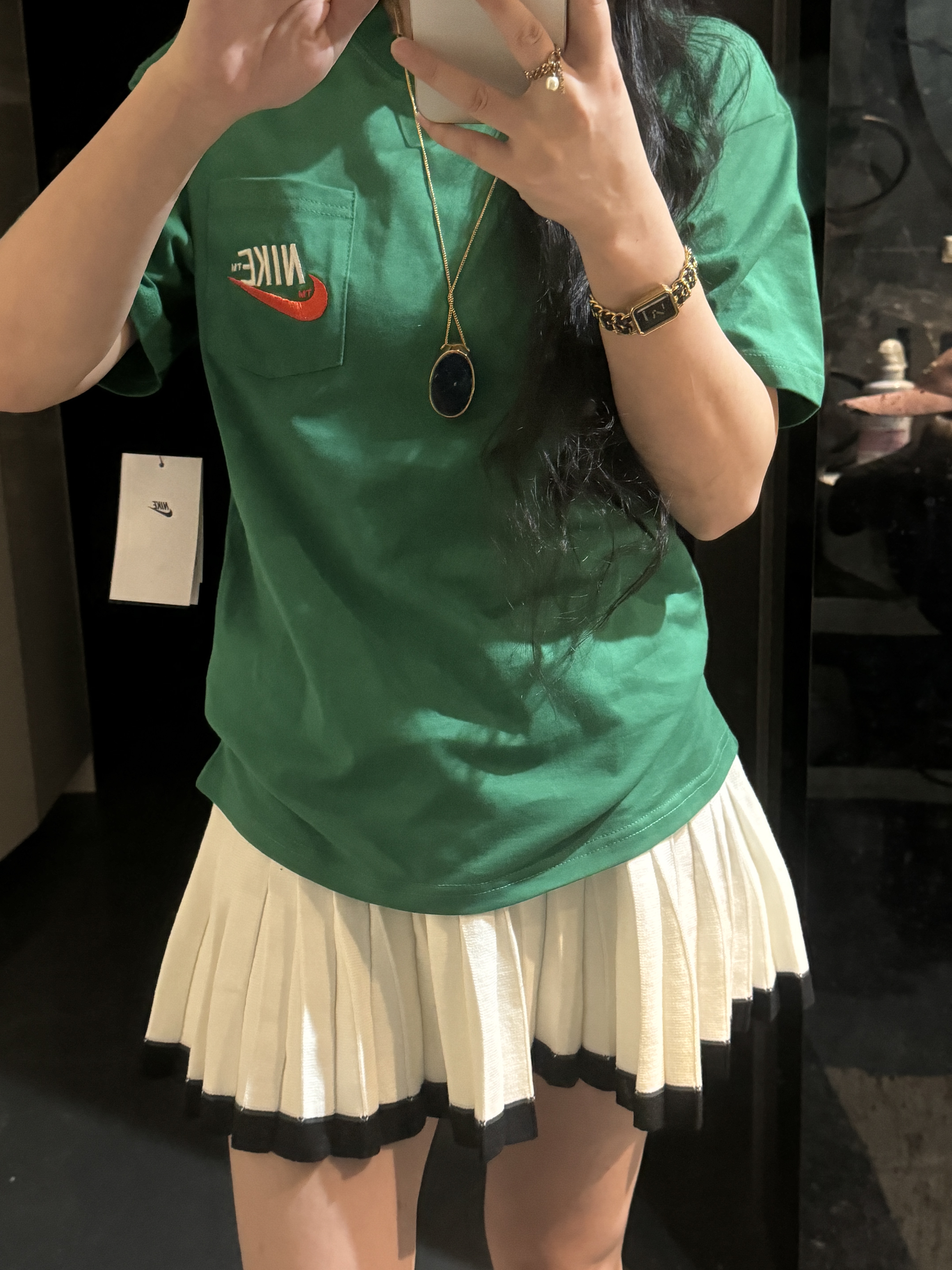 得物热门爆款 在售400➕ N&K徽标口袋圆领宽松短袖T恤 男女同款。圆领设计,前胸有带耐克Logo的口袋,后背有大面积的耐克品牌标识(白色字母搭配红色Swoosh),风格兼具复古与潮流感😋。属于耐克品牌的复古风格系列单品,这类设计融合了品牌经典元素与当下流行的复古回潮趋势,👉采用舒适的棉质面料,既适合日常休闲穿搭,也能满足潮流爱好者对复古运动风的追求,搭配工装裤、运动短裤等都很协调,是打造复古运动造型的不错选择。⚠️ S码90-120斤以内⚠️ M码100-140斤以内⚠️ L码110-160斤以内⚠️ XL码120-180斤以内⚠️ 2XL130-200斤以内 ⚠️正码正拍! zheng品保证📦 蕾姐上身S参考!
