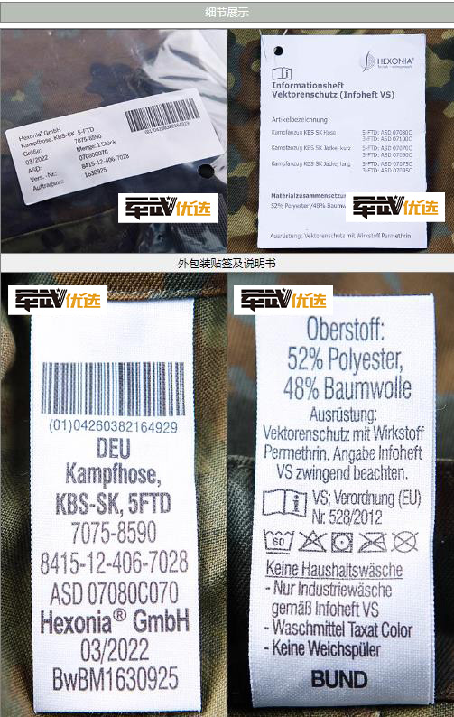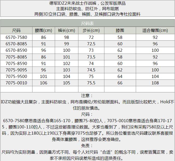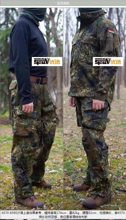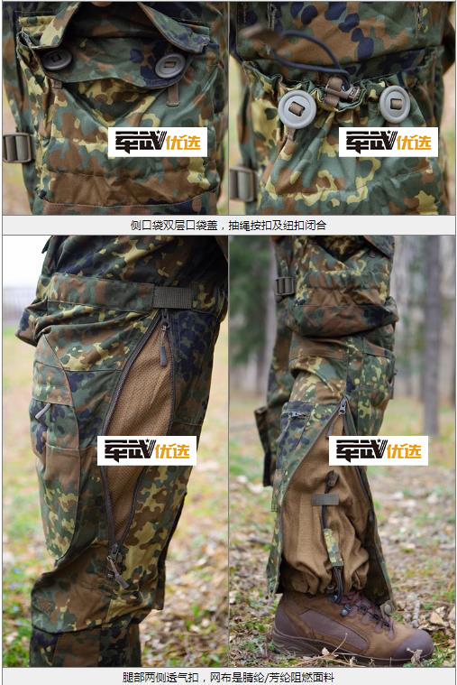 【德国德军原品】户外丛林斑点IDZ战术防蚊虫作战工装多袋直筒长裤子ds(sj)