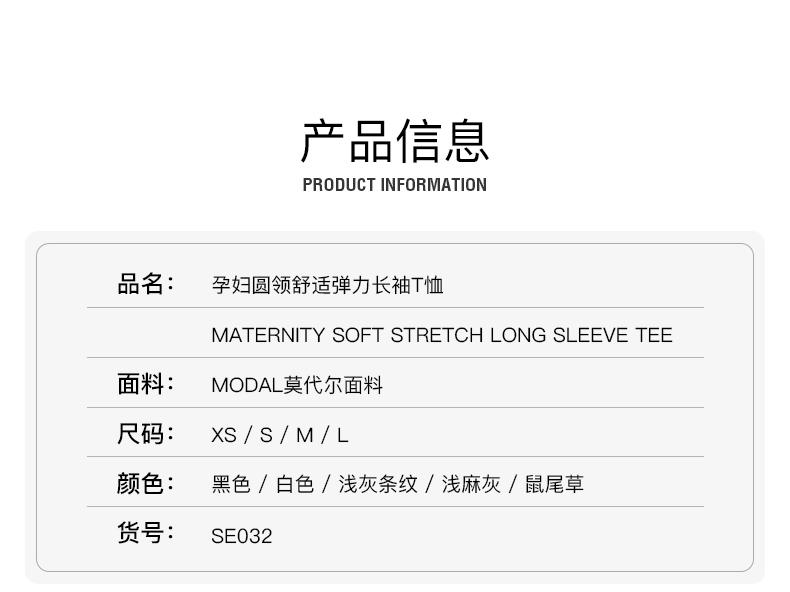 孕妇圆领舒适弹力长袖T恤 / Maternity Soft Stretch Long Sleeve Tee