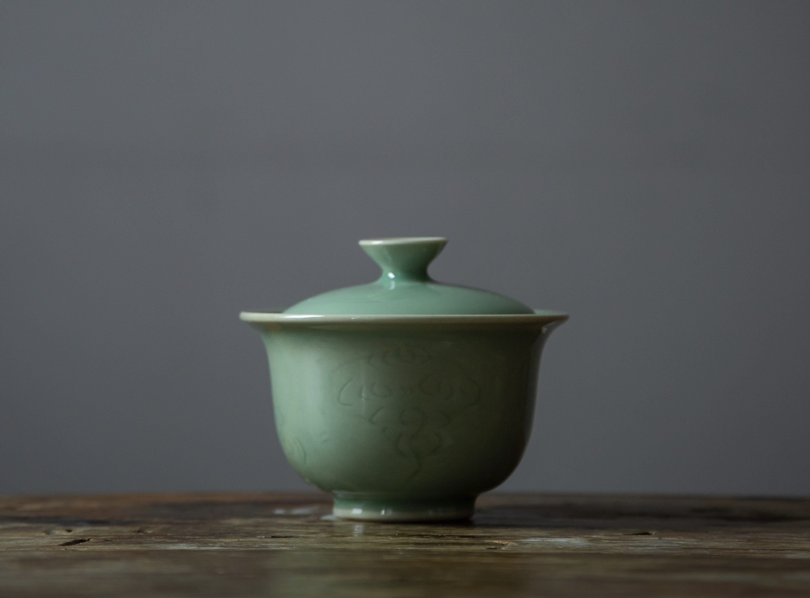 梅子青云纹盖碗,端庄沉稳,线条柔和细腻,