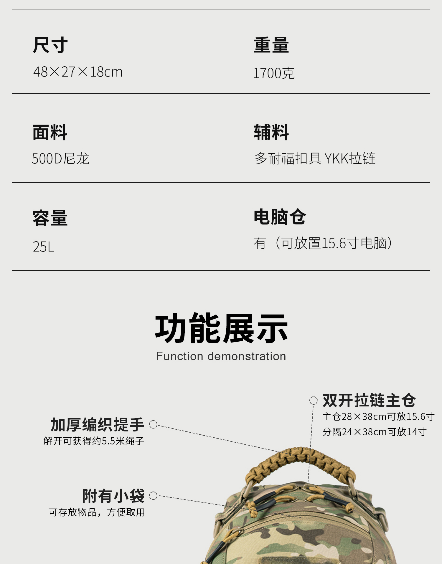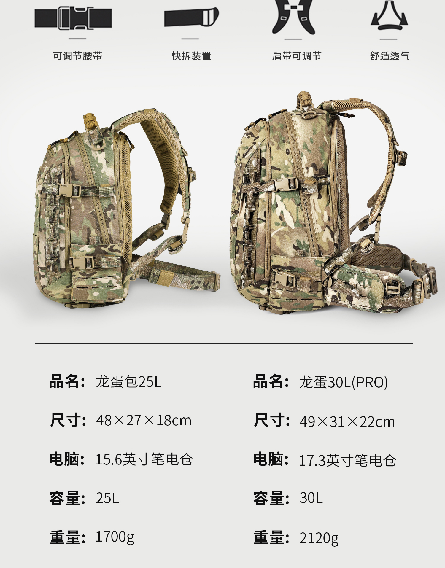VOTAGOO 复刻强袭者 DA 龙蛋 2 代 / 2Pro 25L 迷彩户外登山徒步战术背包 ds(dq)