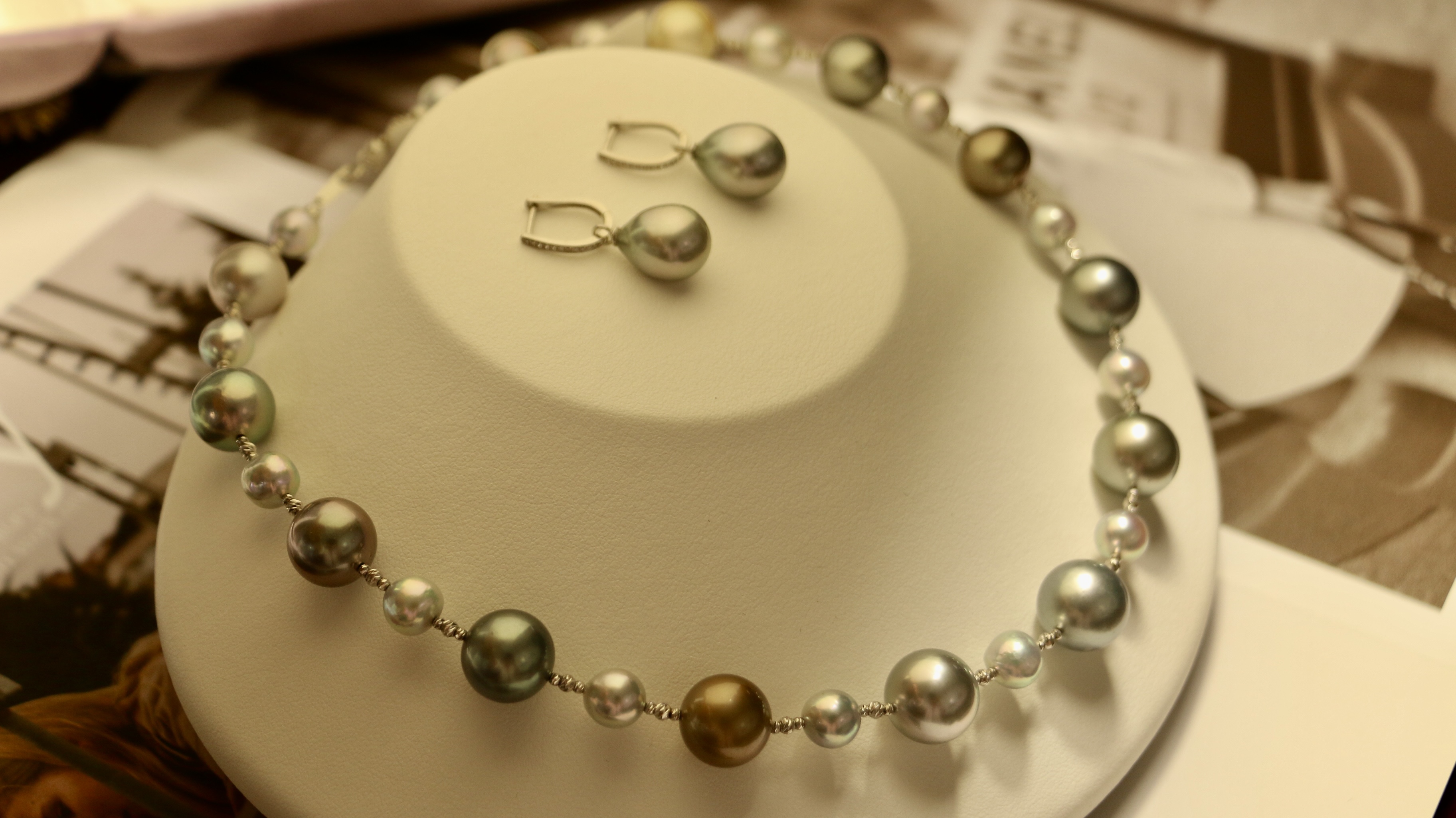 【不含耳钉】甄珠贝 大溪地铂金灰系12-14mm + 真多麻巴洛克8-9mm 间隔项链 18k白金配件(不含耳环)