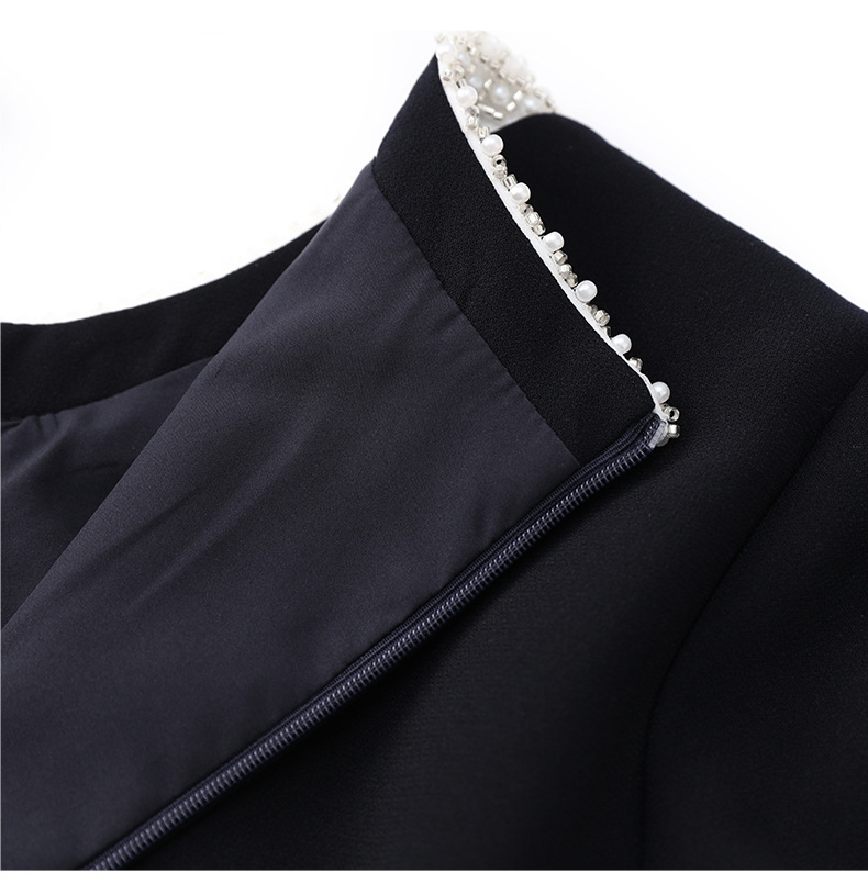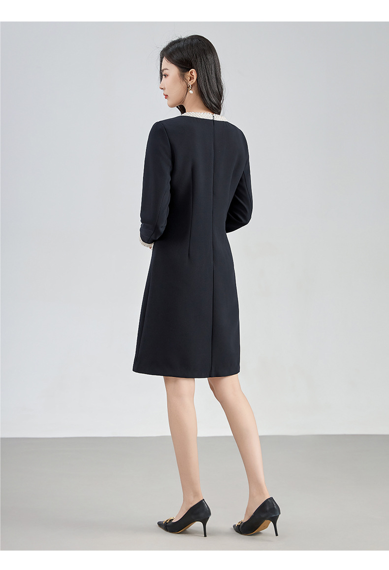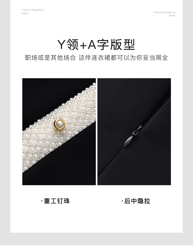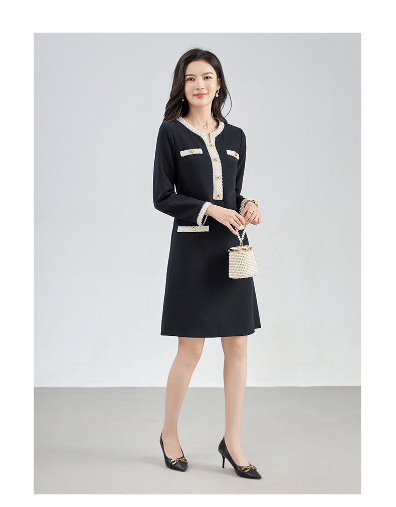 【高货wl】全新升级【铂金会员321/天猫429/差价108】(05156) 洛诗琳气质小香长袖连衣裙新款气质钉珠撞色V领显瘦A字裙