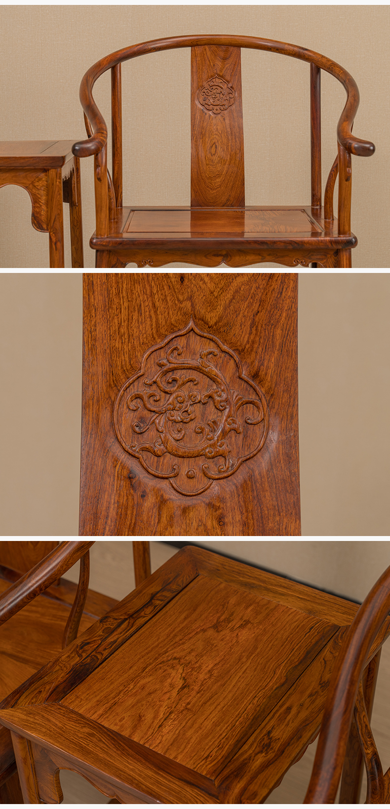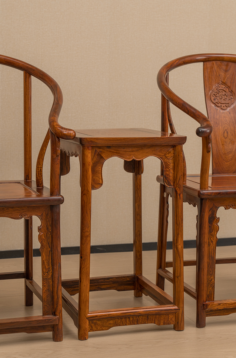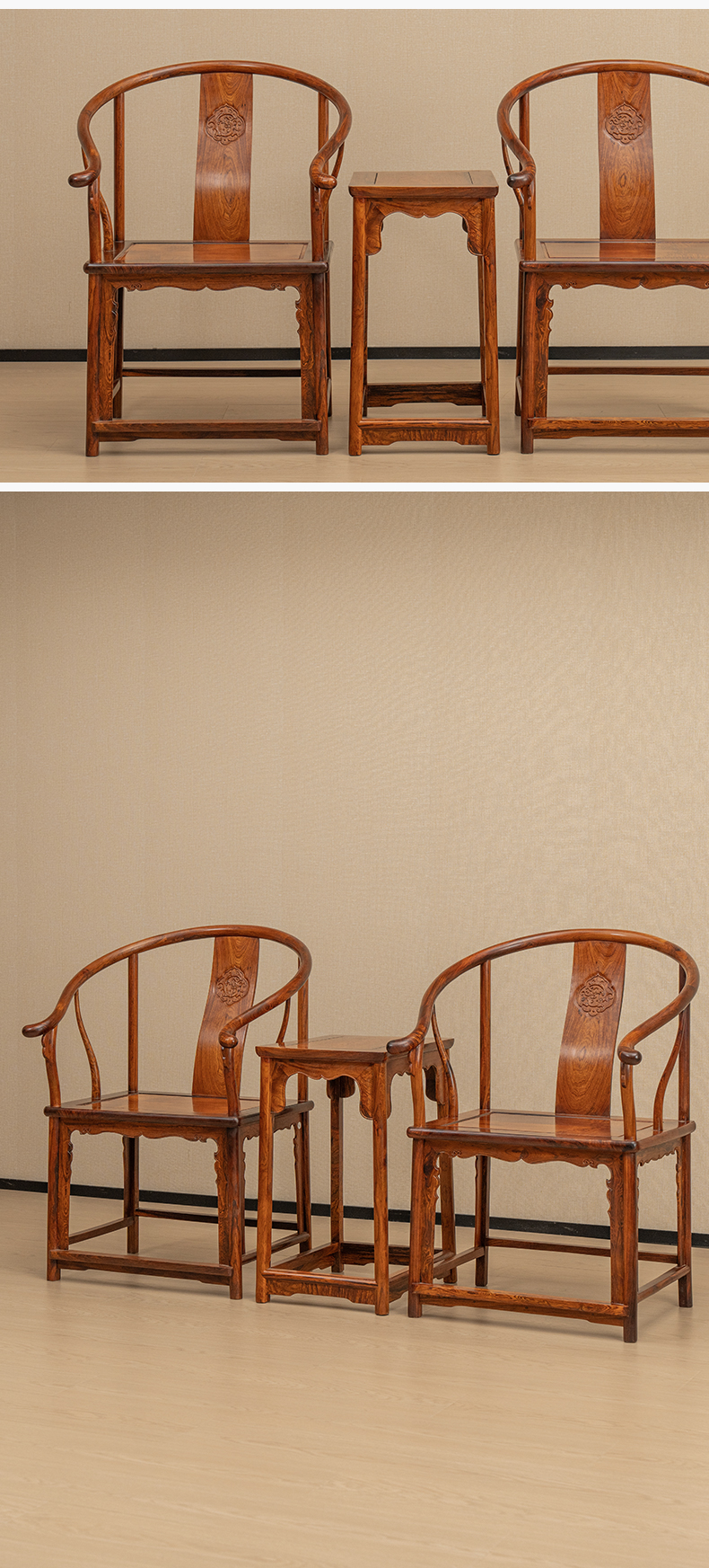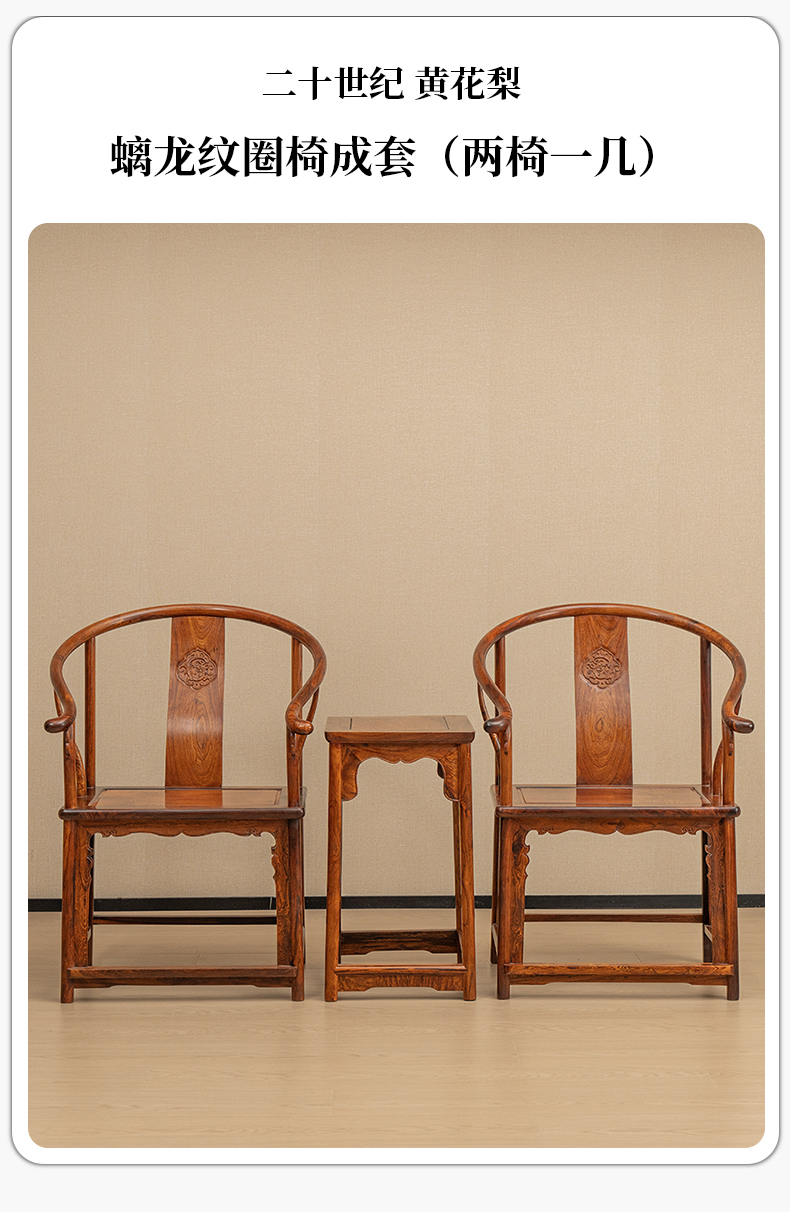 二十世纪 黄花梨螭龙纹圈椅成套(两椅一几)