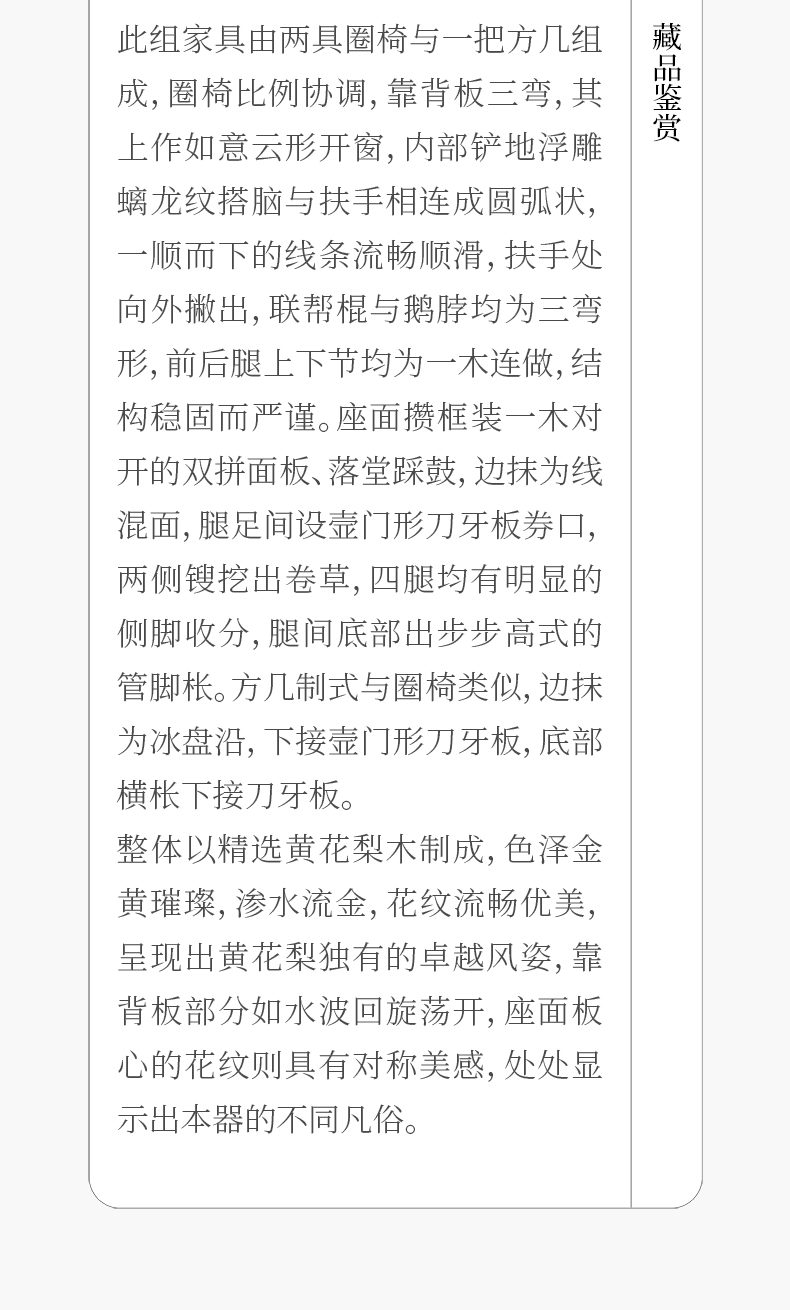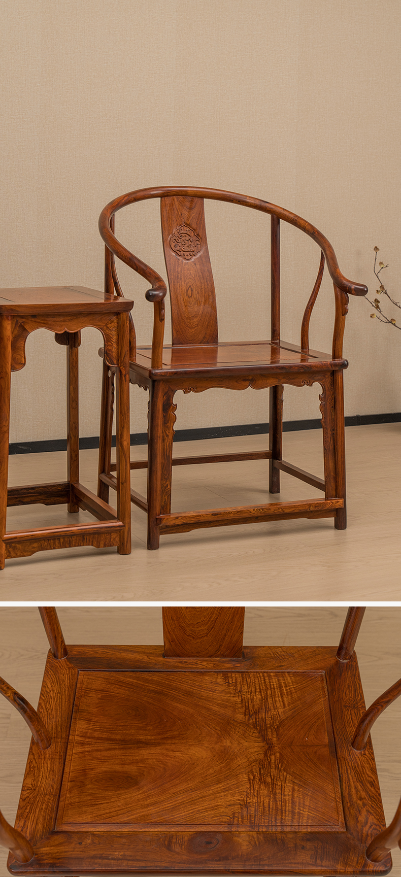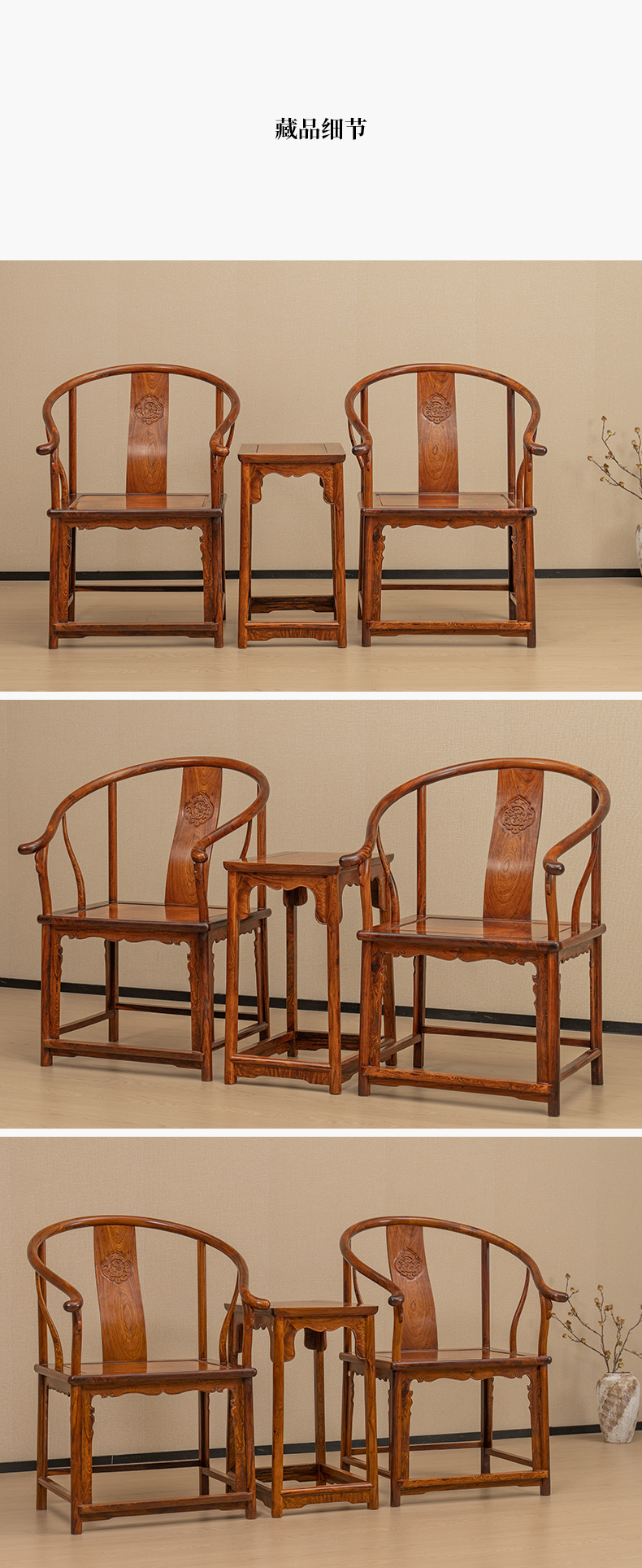 二十世纪 黄花梨螭龙纹圈椅成套(两椅一几)