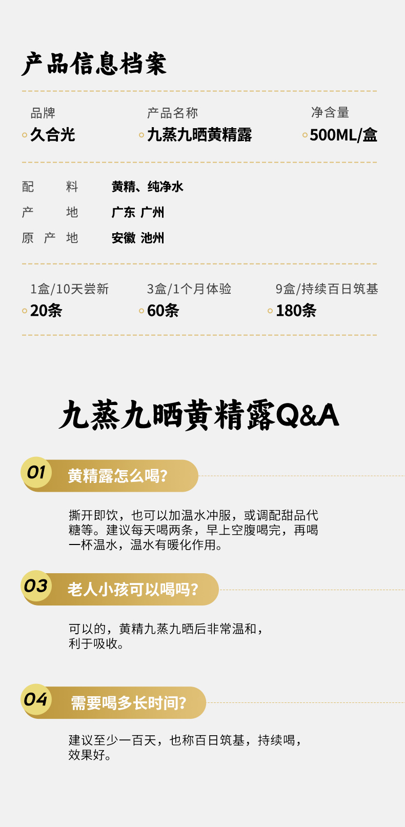 九蒸九晒黄精露 仙人余粮 三大活性纯植物 喝出好气色