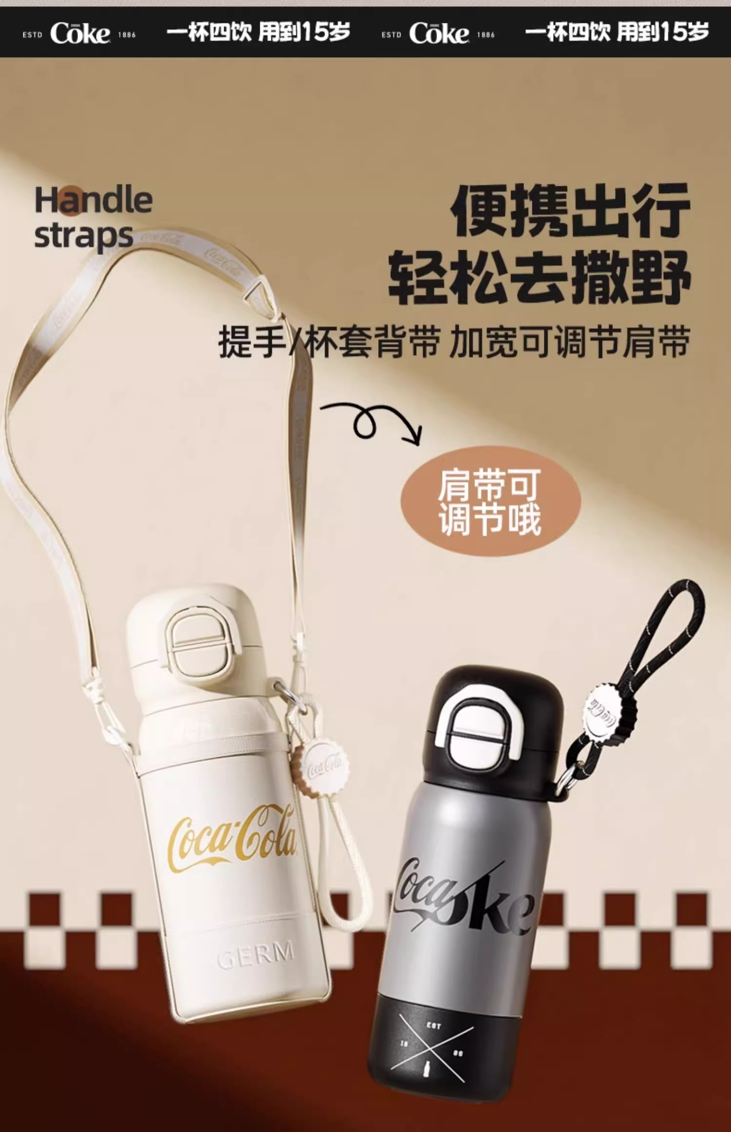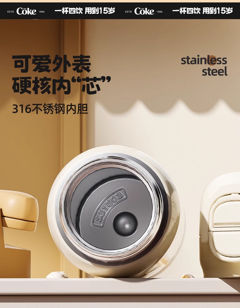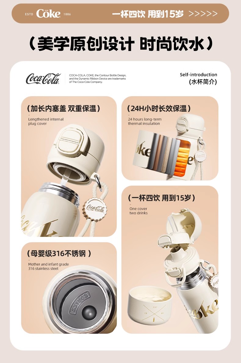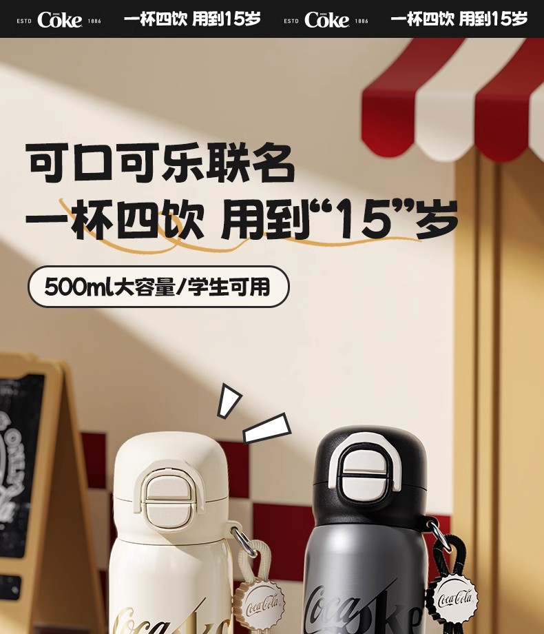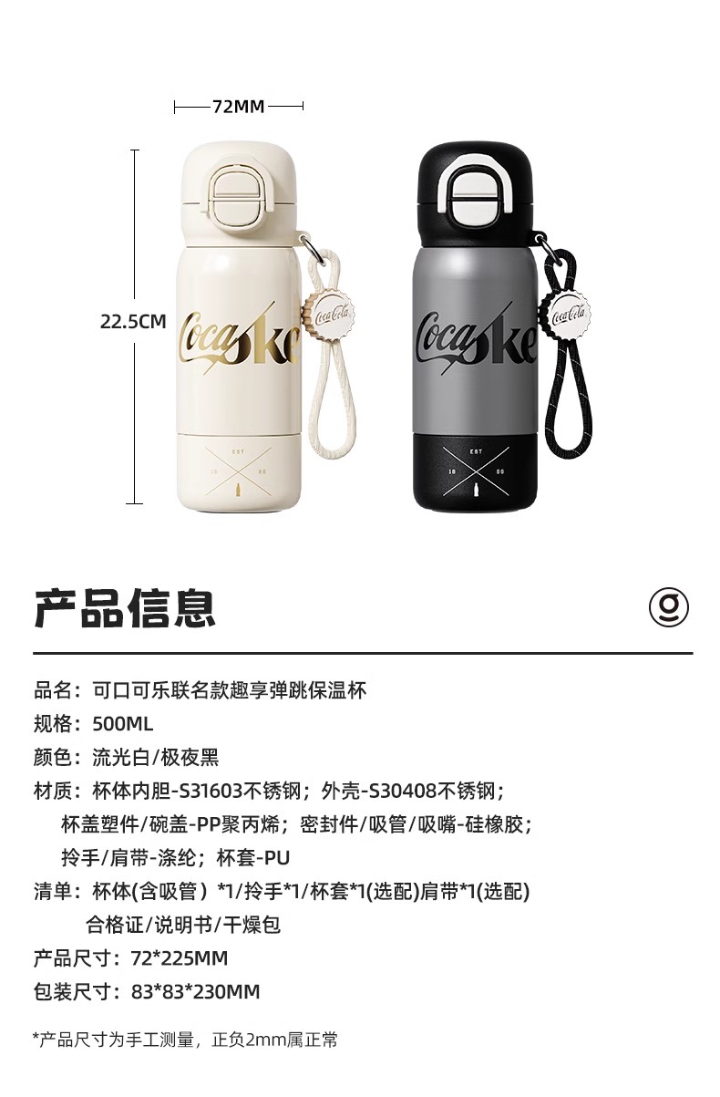 GERM可口可乐联名款趣享弹跳保温杯500ml(极夜黑)