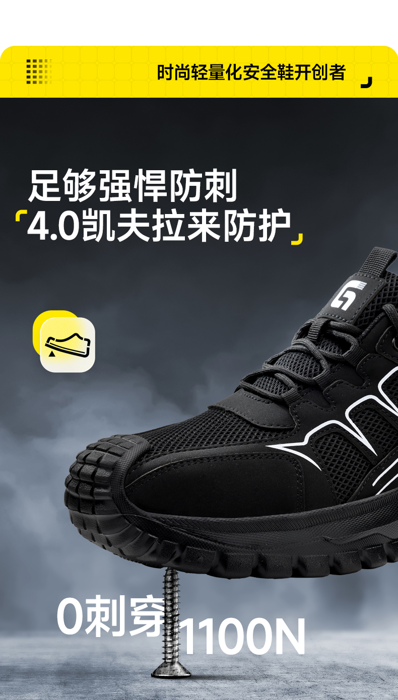 古伊萨新款防砸防刺安全鞋低帮四季款4.0凯夫拉轻软EVA底
