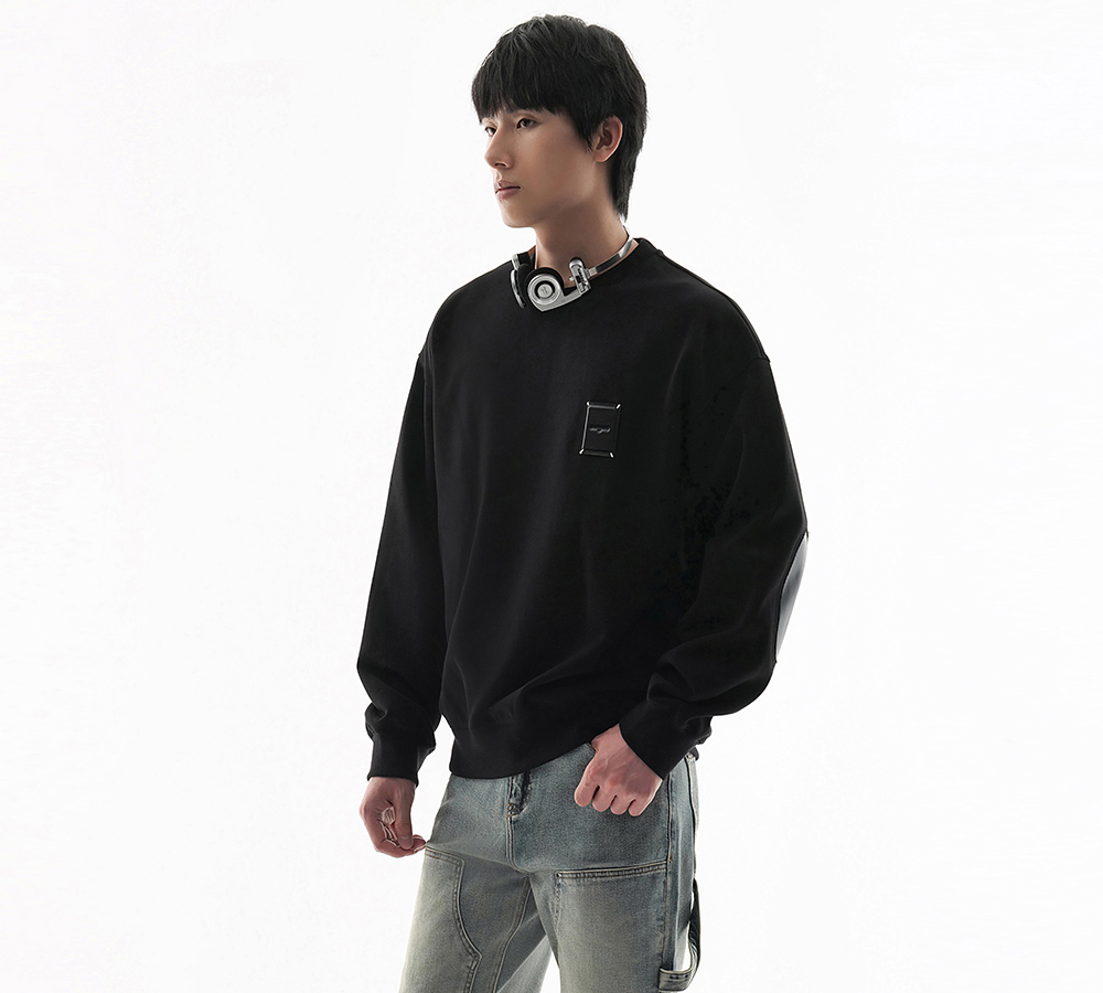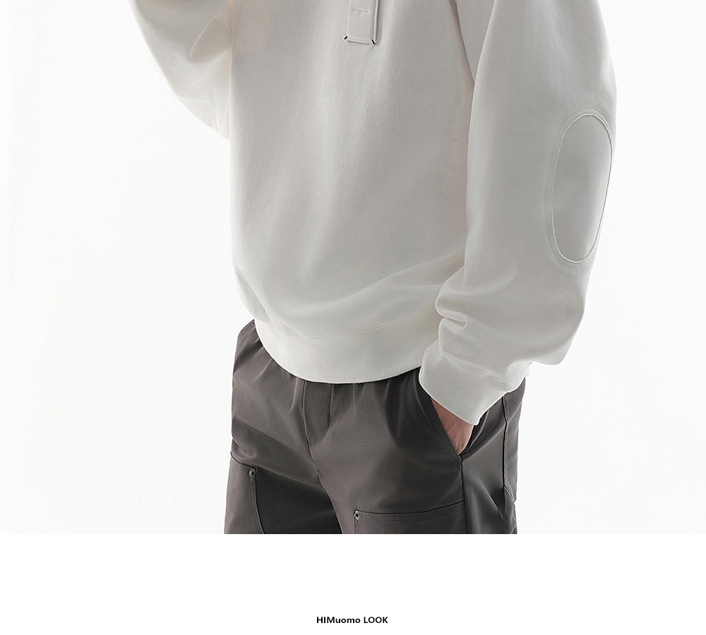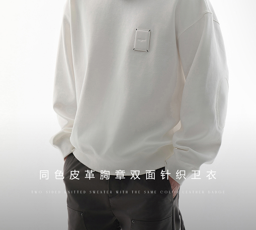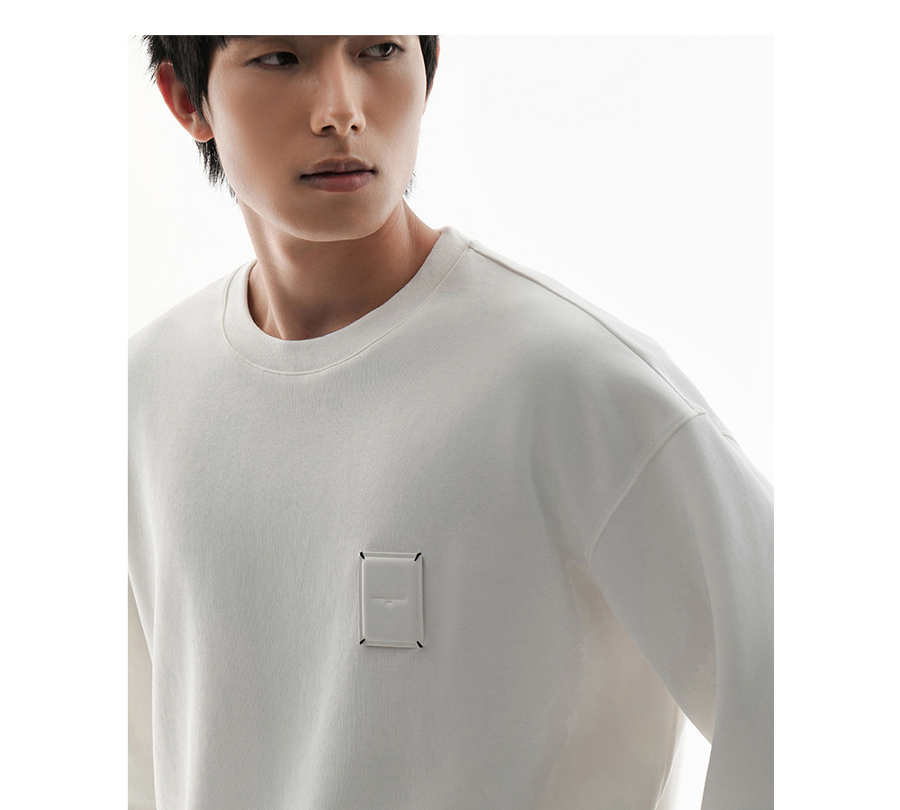 漢崇HIM 简约舒适压花胸章休闲宽松微弹长袖套头圆领卫衣2025秋季