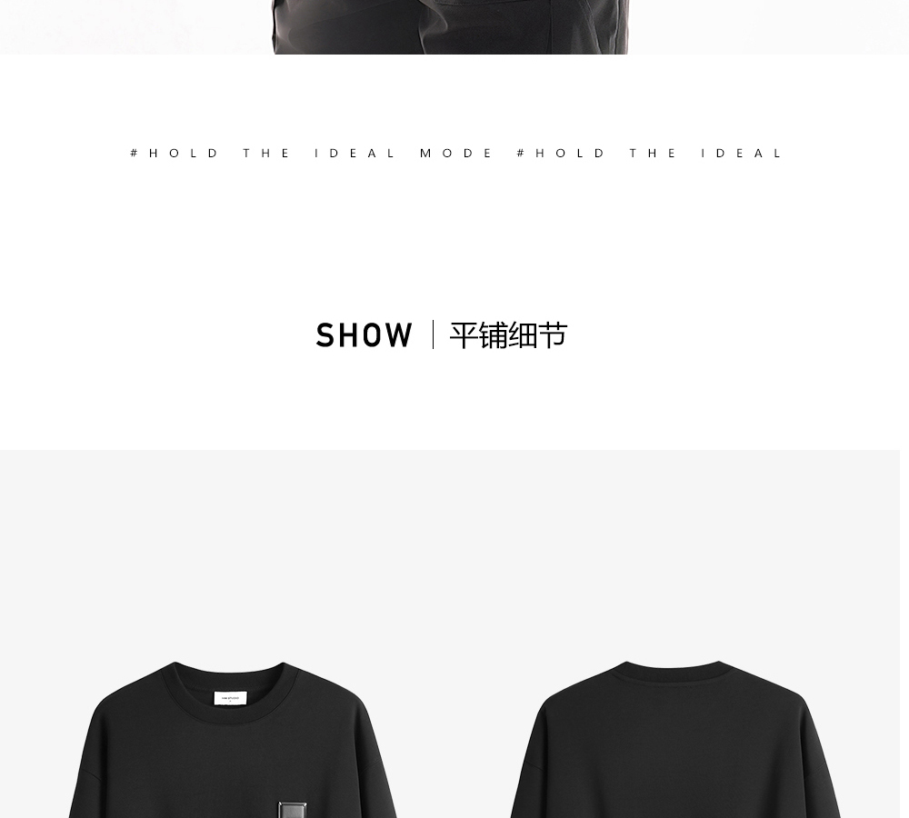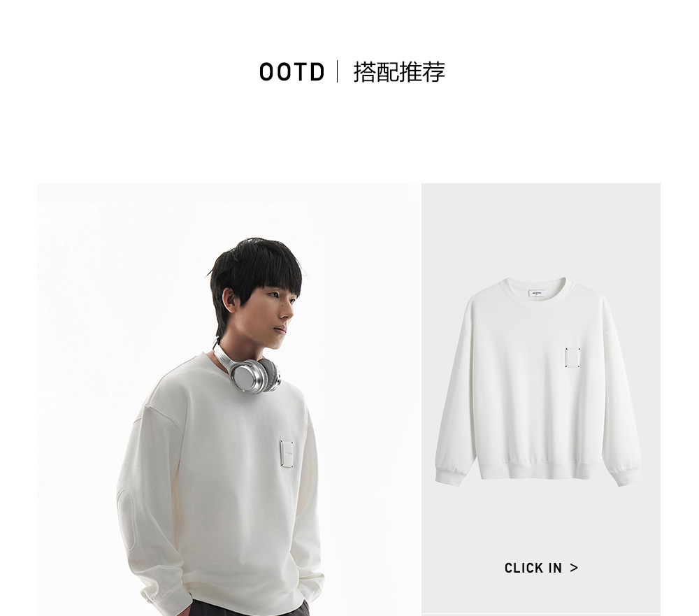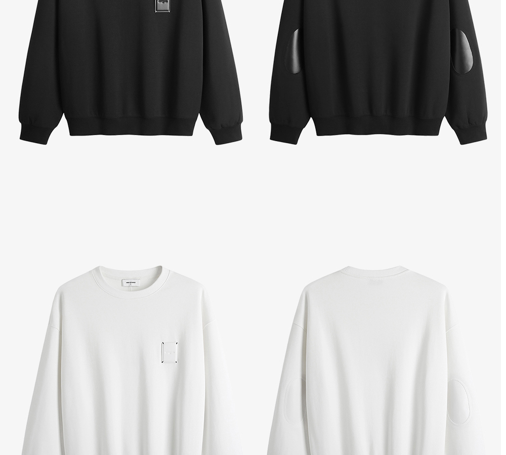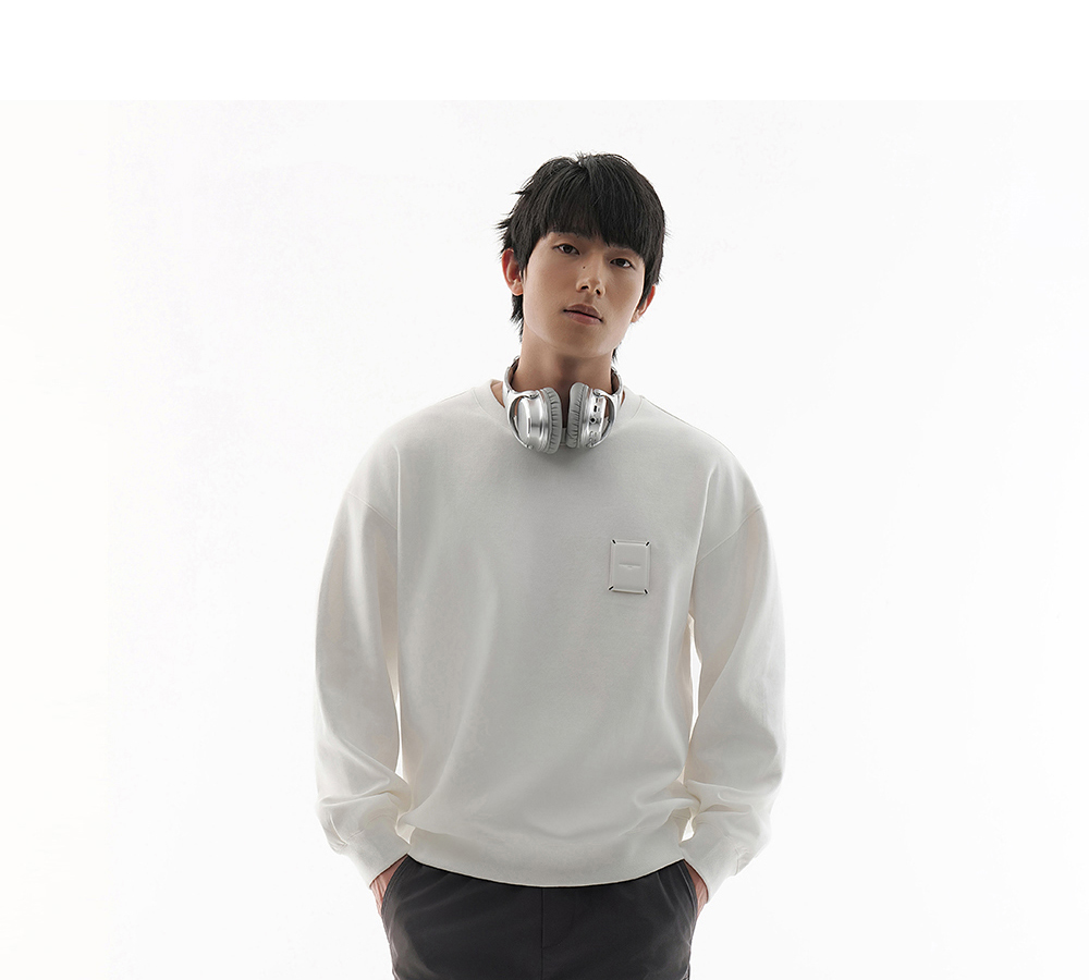 漢崇HIM 简约舒适压花胸章休闲宽松微弹长袖套头圆领卫衣2025秋季