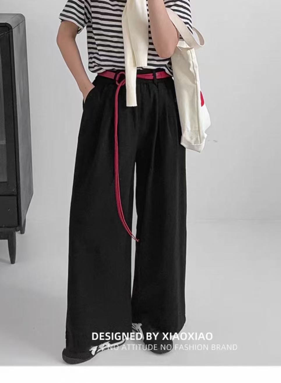 【秋上新】送腰带-893简约松紧腰撞色腰带九分休闲裤(面料不易粘毛)-喜出
