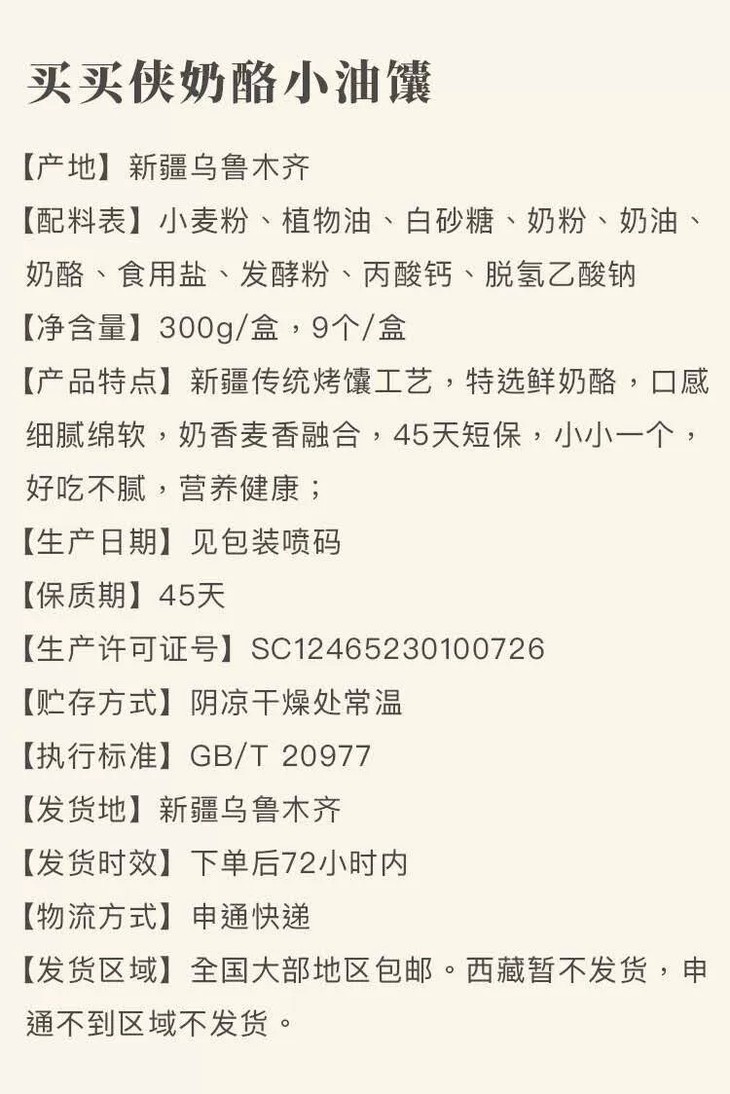 买买侠手工奶酪喔喔馕300g/盒*3盒