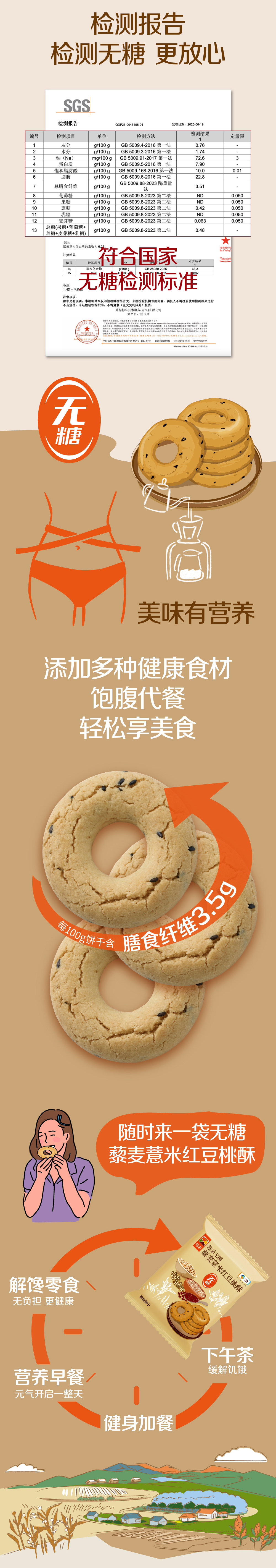 【无糖桃酥】中粮悠采藜麦薏米红豆桃酥 小米山药桃酥 糖友老人孕妈可食 健康代早餐饼干