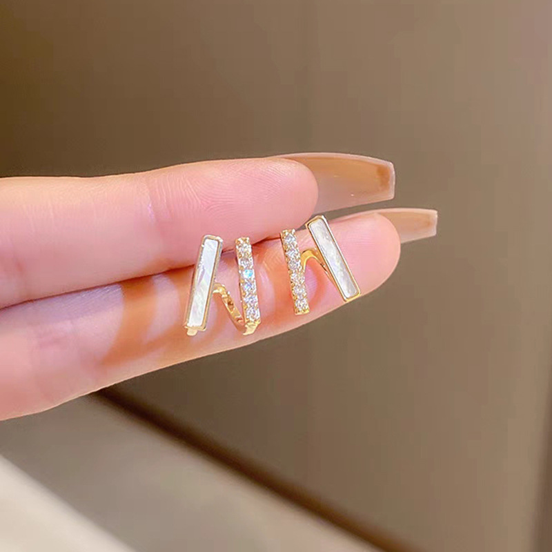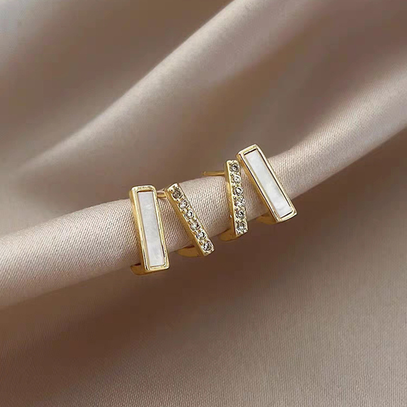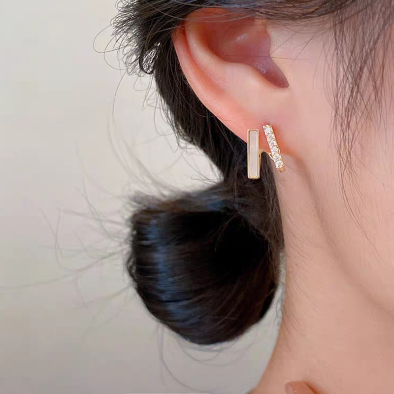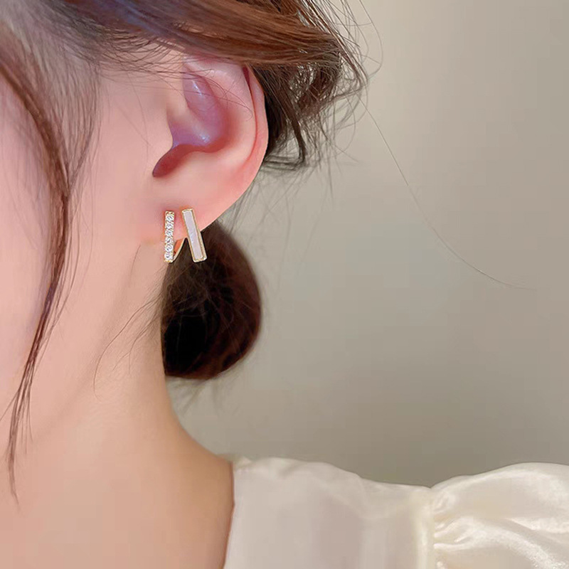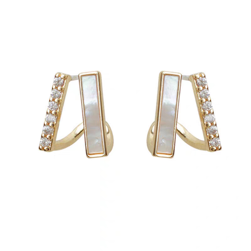 JU-C0082韩国新款冷淡风几何耳钉女双层小众设计感气质时尚耳环仿贝耳饰潮