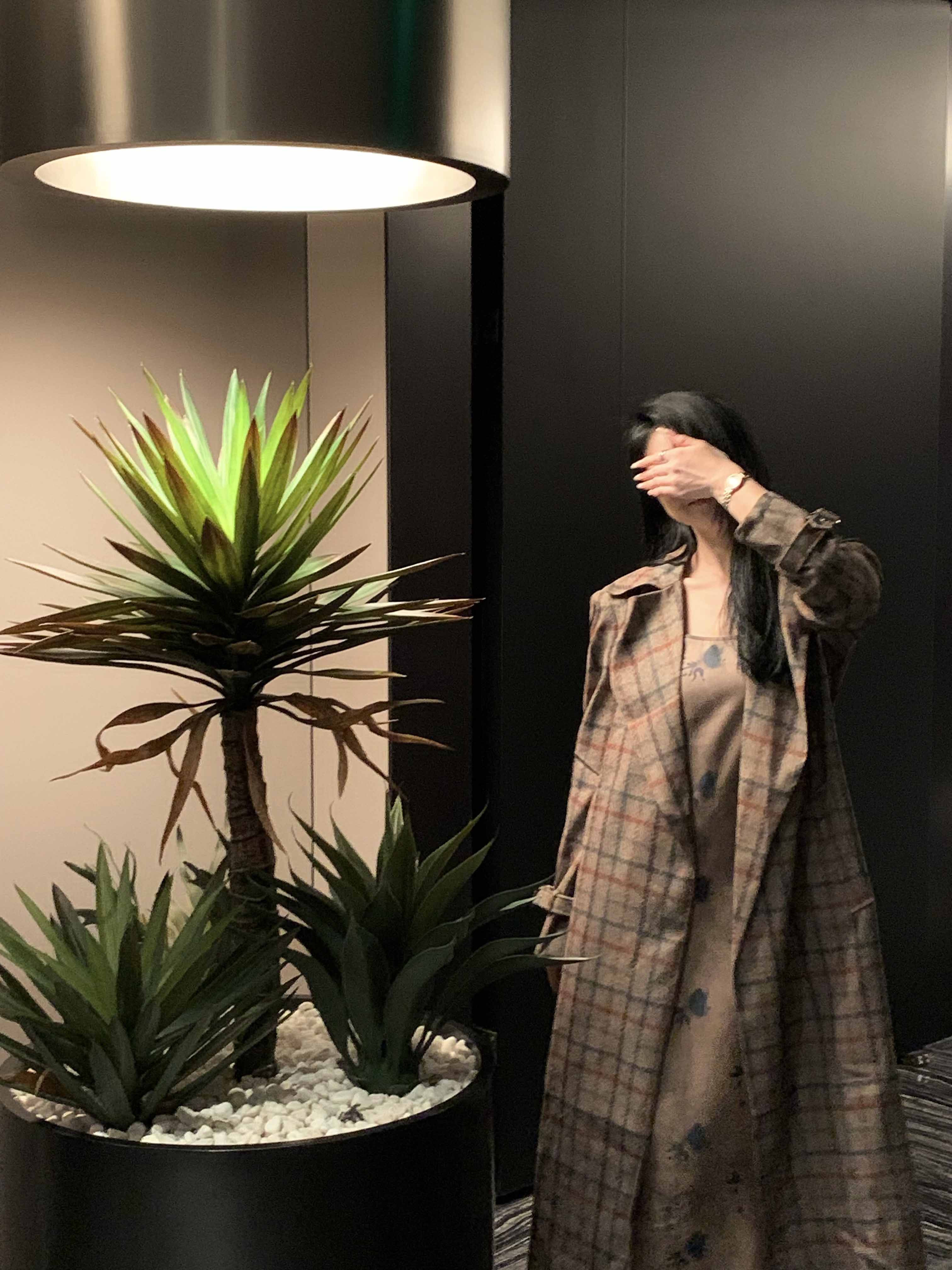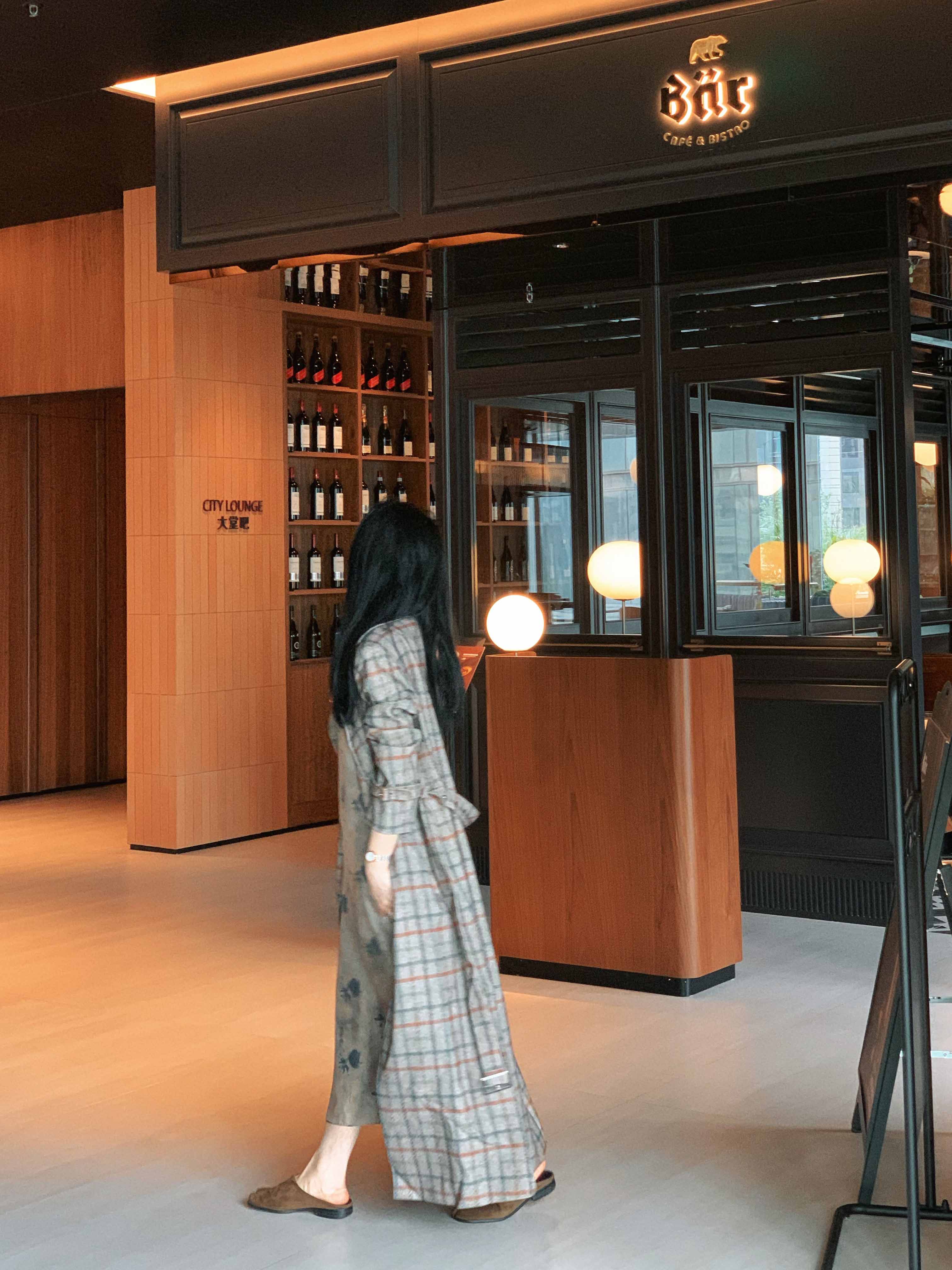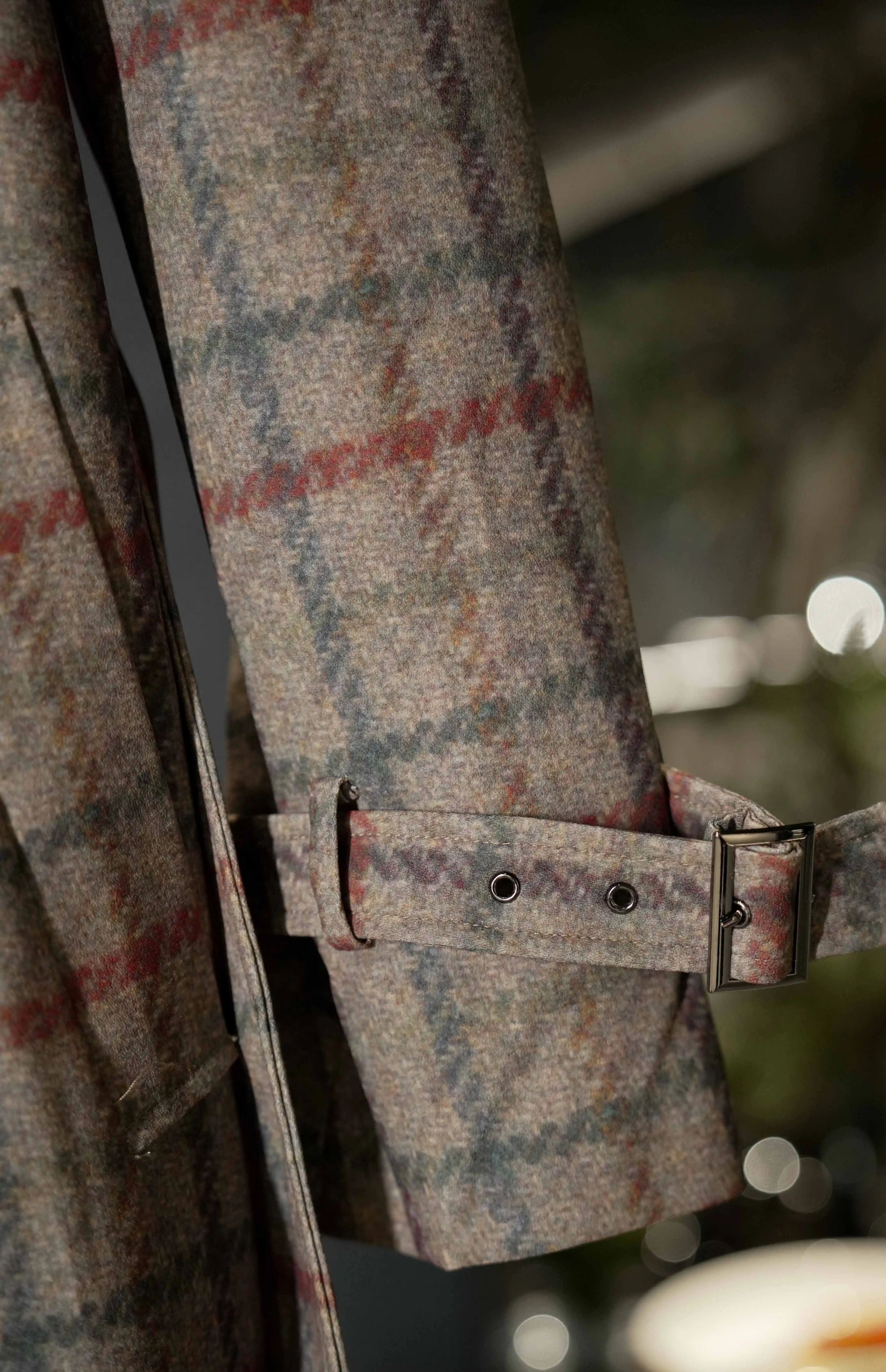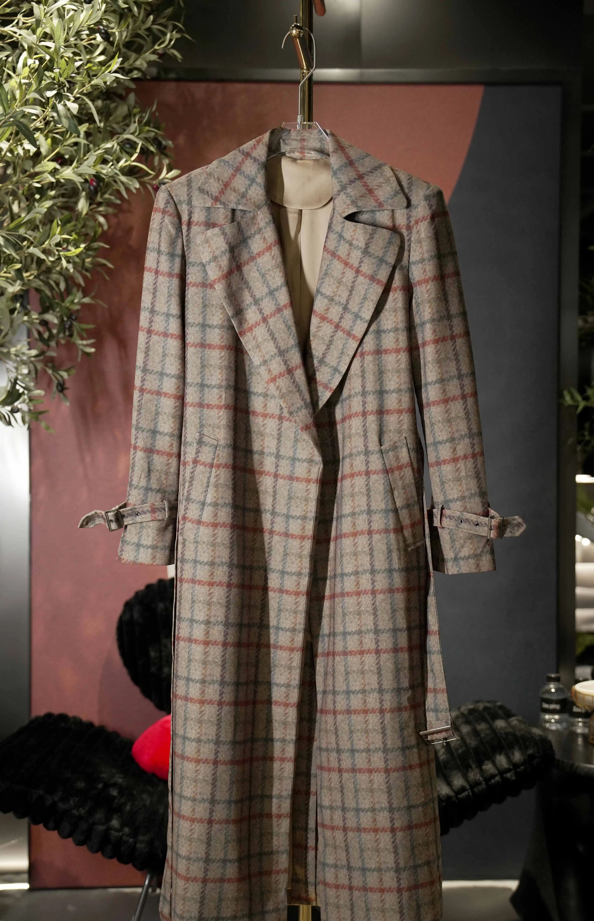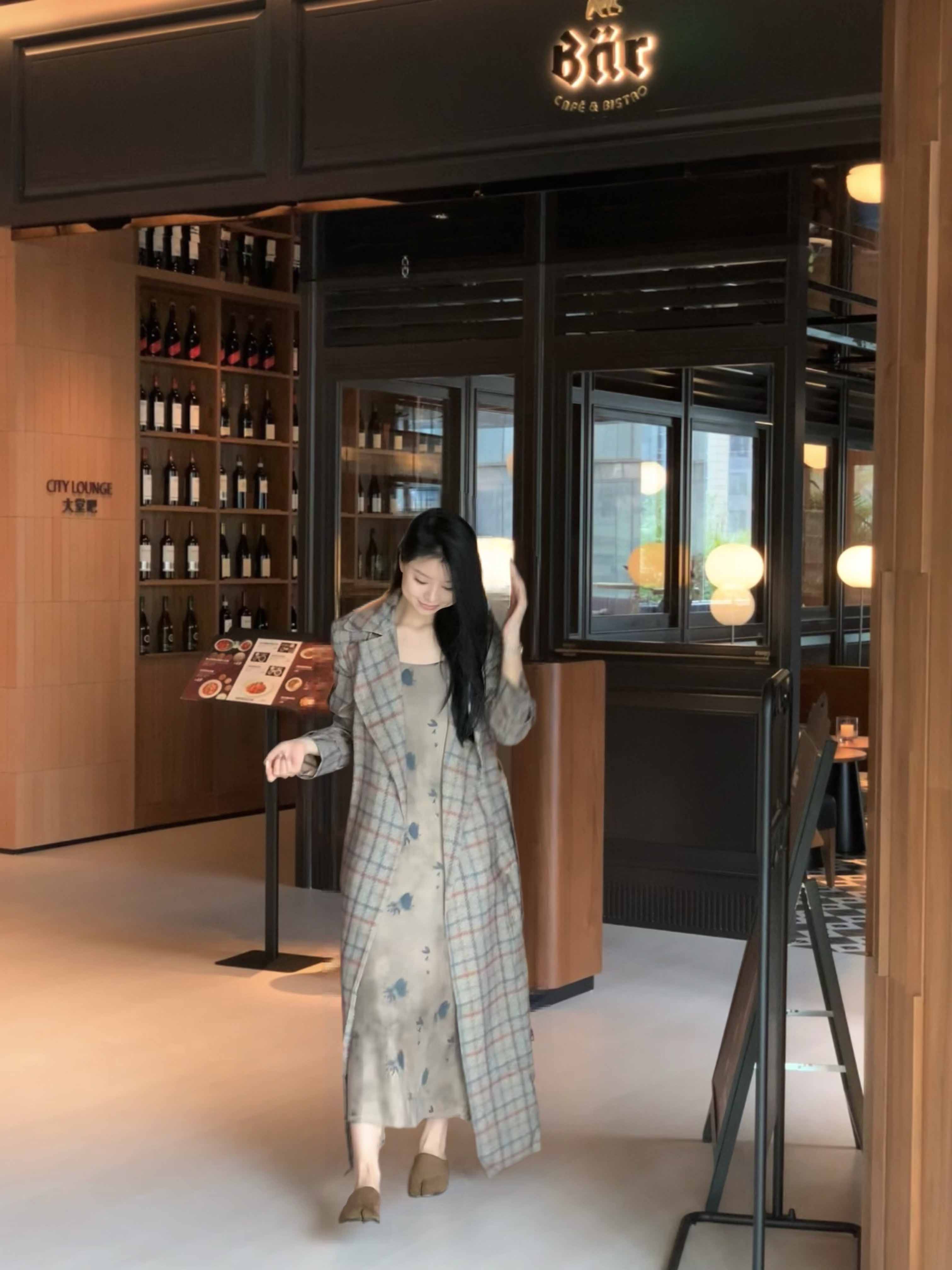 顺丰包邮洛诗琳35155复古英伦风长款慵懒格纹风衣女6044