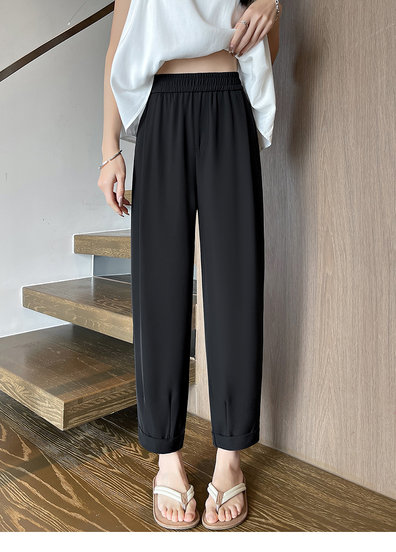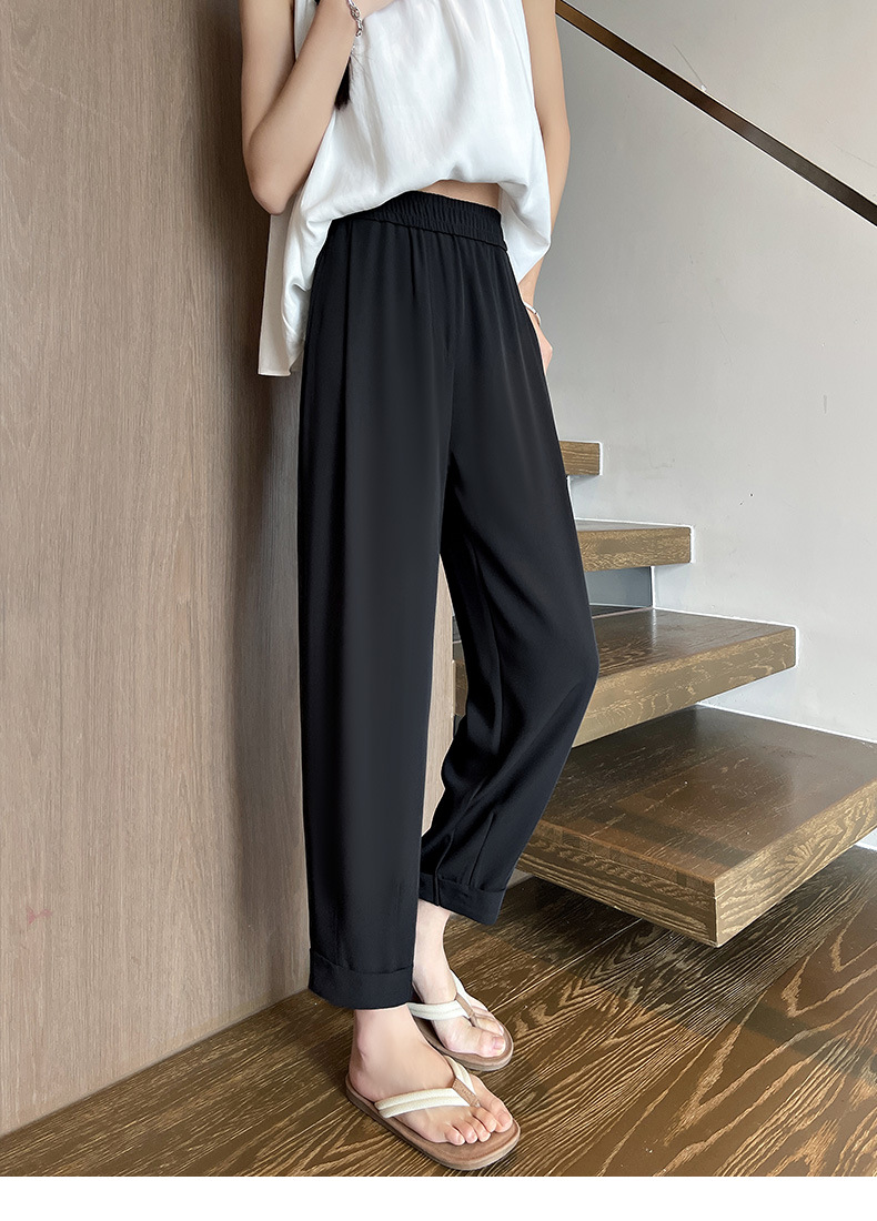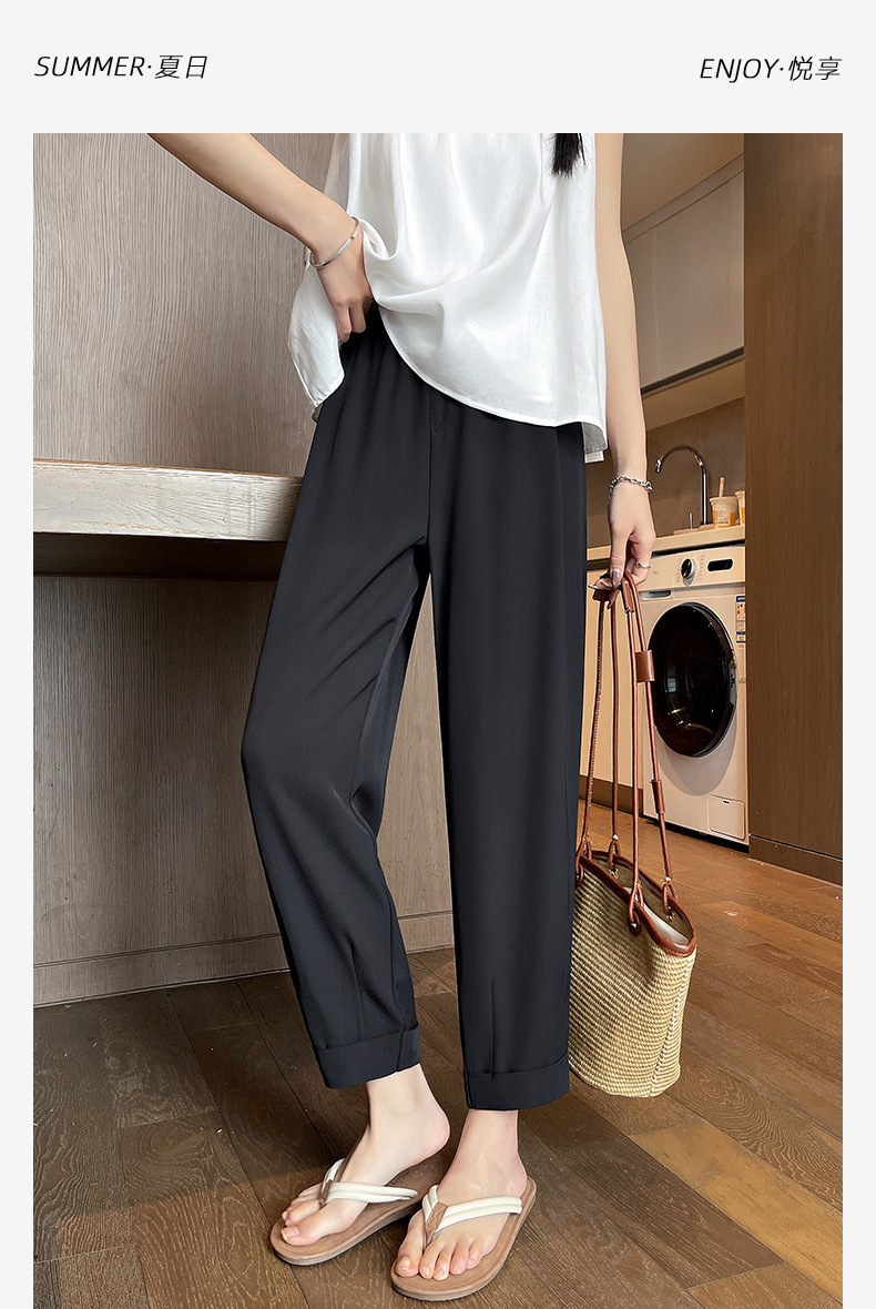 TZW-夏薄款冰丝烟管西裤高腰休闲裤