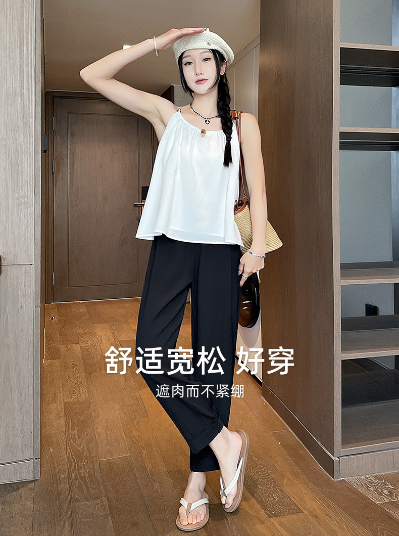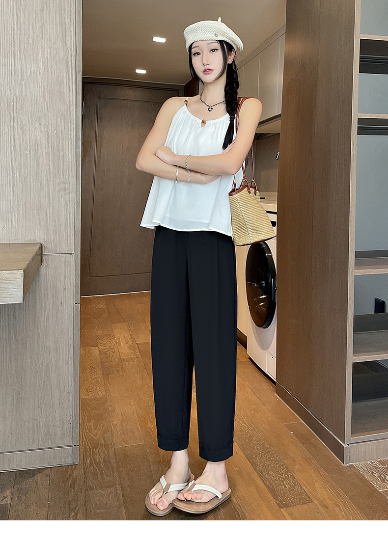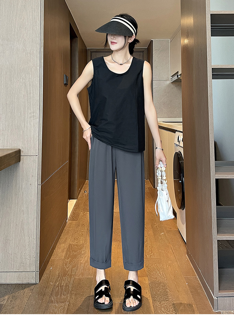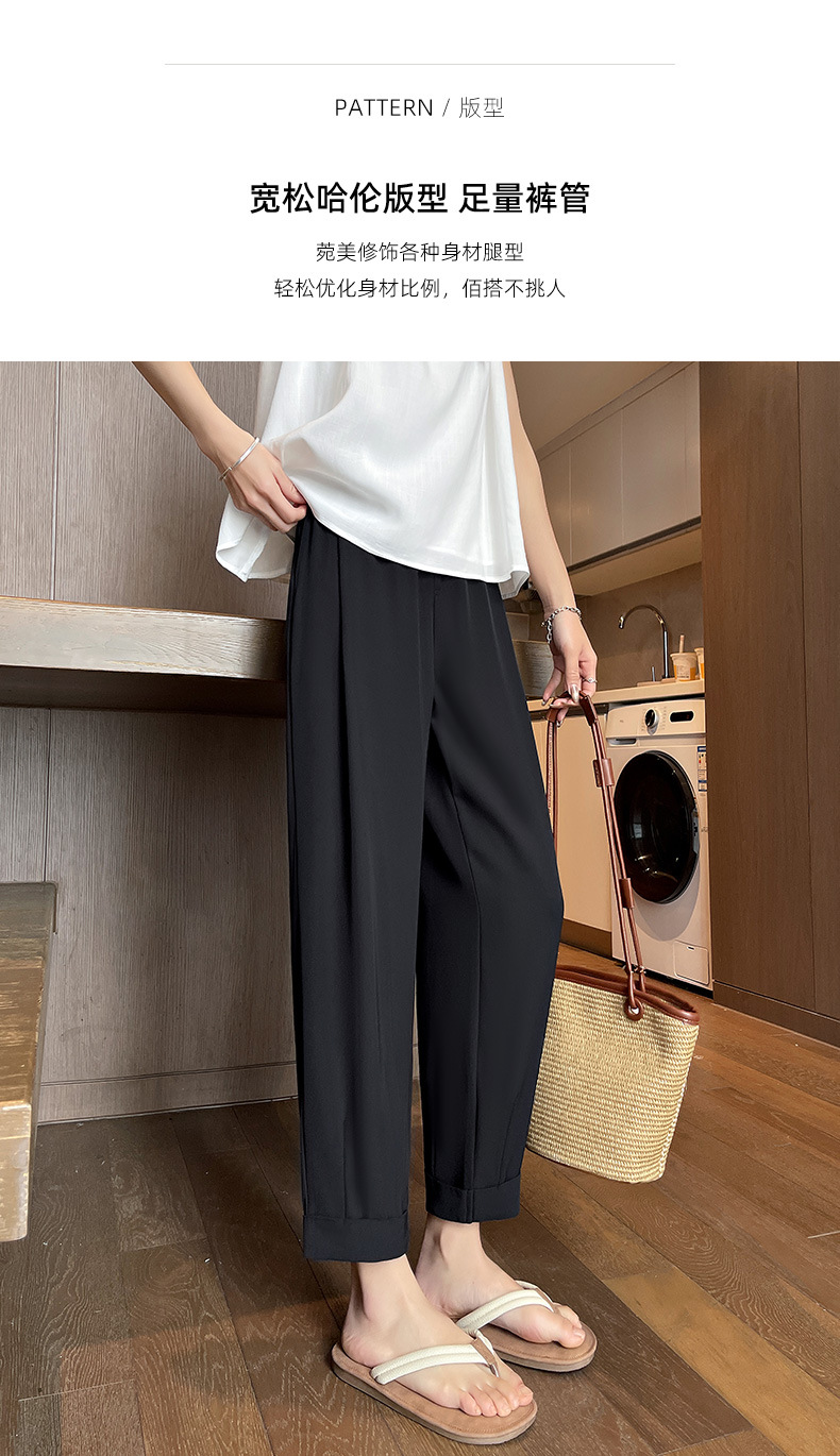 TZW-夏薄款冰丝烟管西裤高腰休闲裤