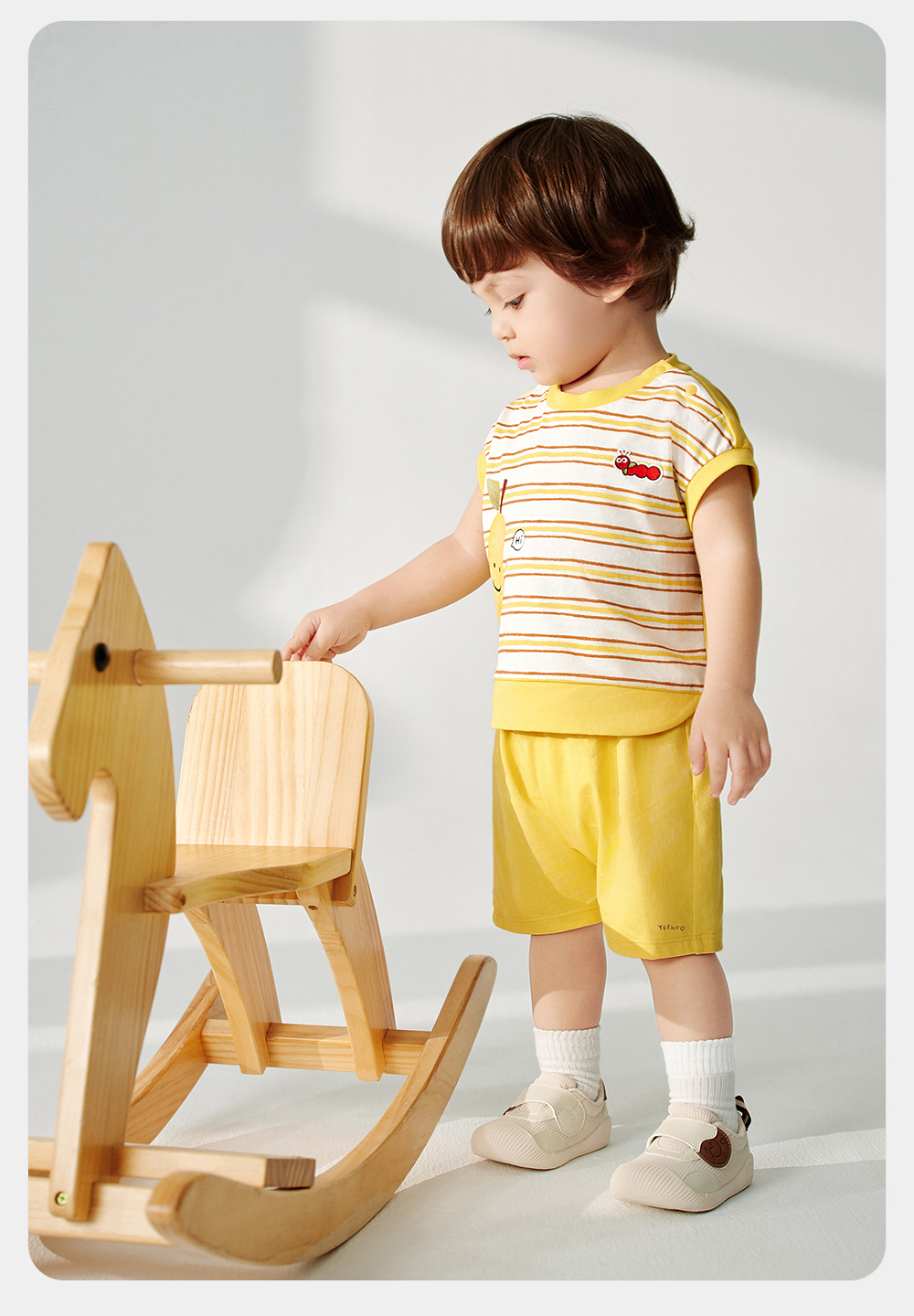 英氏儿童套装夏季透气男童短袖短裤纯棉套装休闲2025新款宝宝衣服