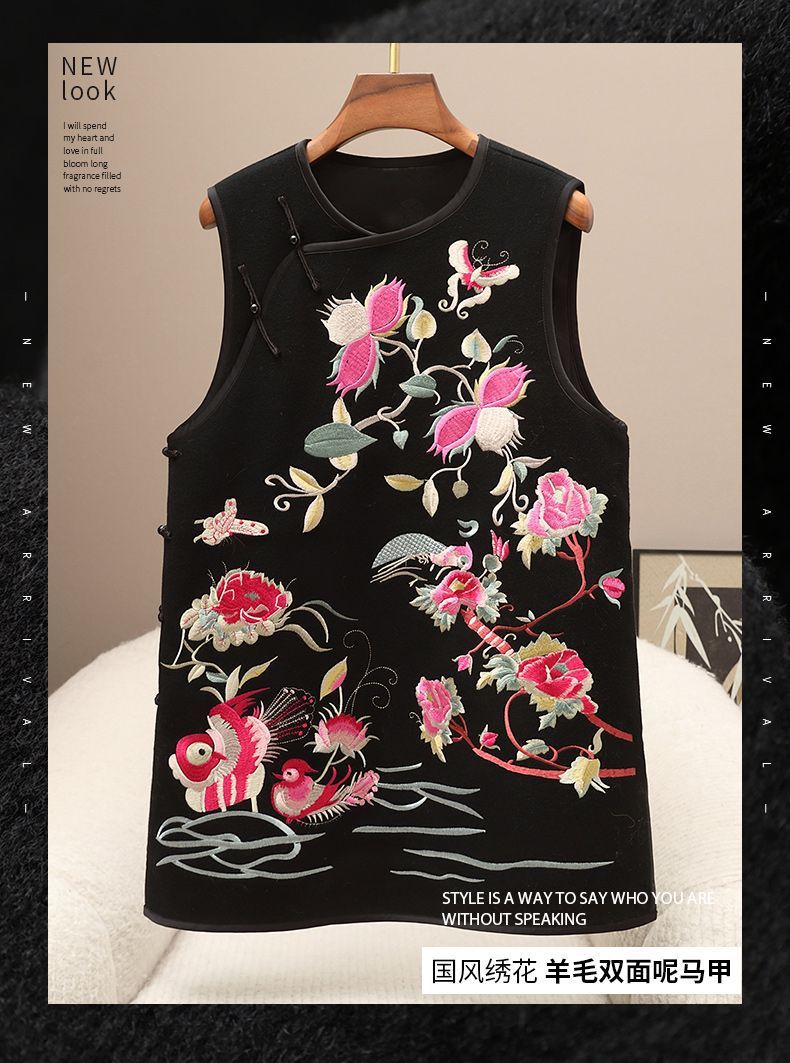 断码清仓价HH 25111307羊毛休闲毛呢马甲新中式旗袍刺绣外套
