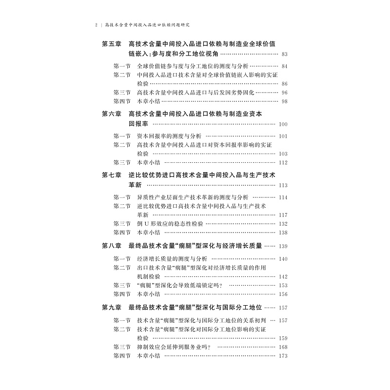 本书为国家社科基金后期资助项目成果。首先,借助均衡状态偏微分分析,细致刻画高技术含量中间投入品进口依赖的经济效应;其次,借助多种计量方法,揭示高技术含量中间投入品进口依赖的经济效应;再次,衡量高技术含量中间投入品进口依赖对技术革新、增长质量和分工地位的影响;最后,结合当前经济发展的主流趋势,细致检验高技术含量中间投入品进口依赖的潜在优化路径,进而勾勒出中国高技术含量中间投入品进口依赖的自立自强型优化路径。