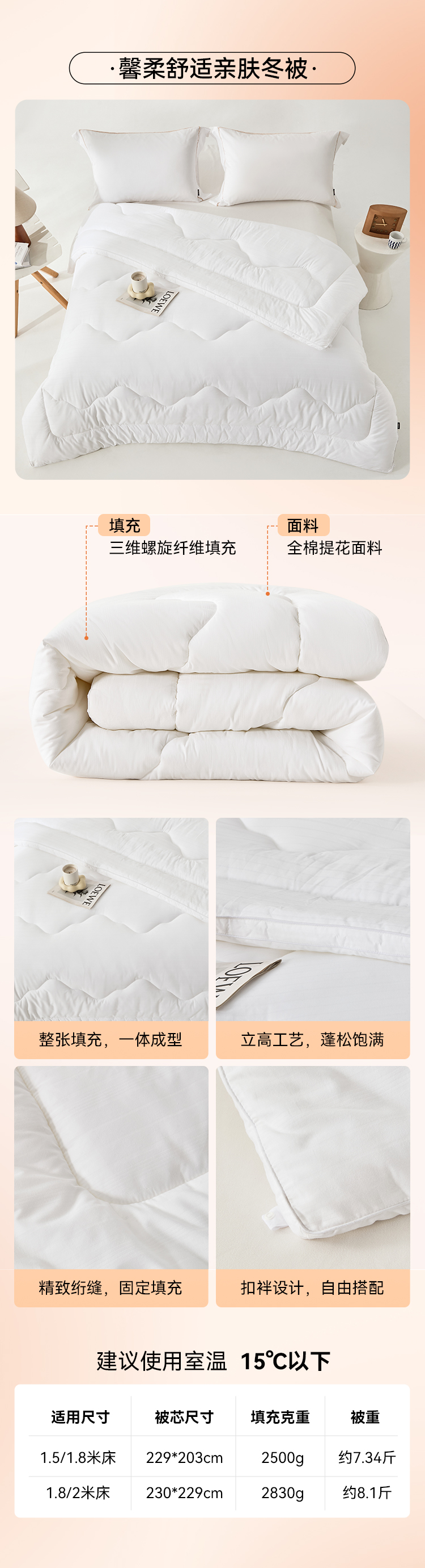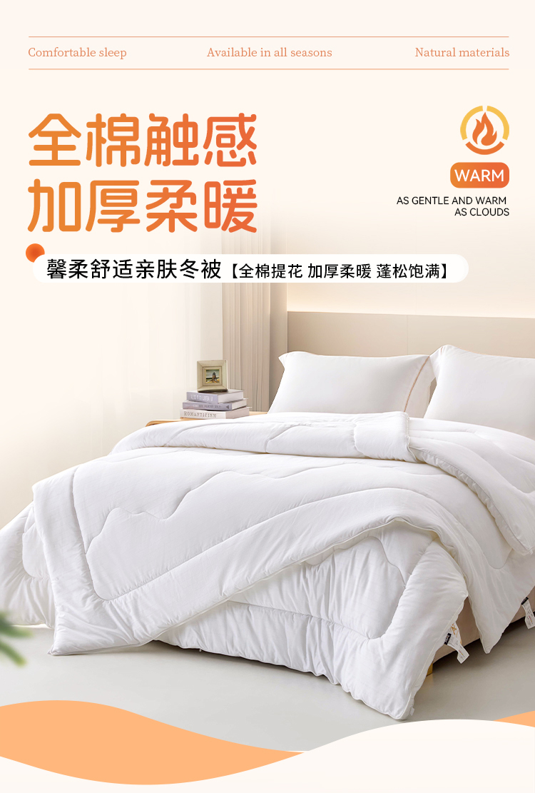 多喜爱 馨柔舒适亲肤冬被【全棉提花】【加厚柔暖】【蓬松饱满】【立高工艺】A类 精致绗缝 包边工艺