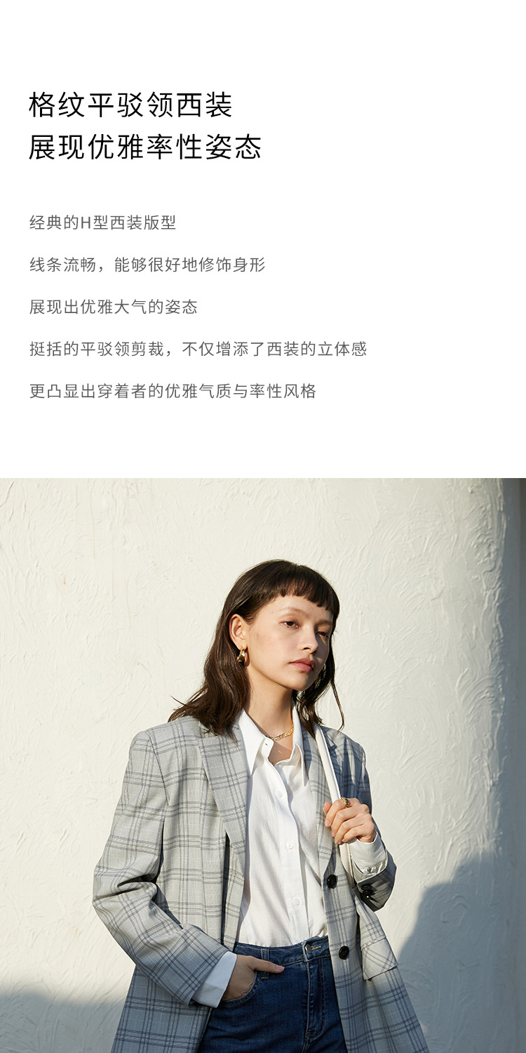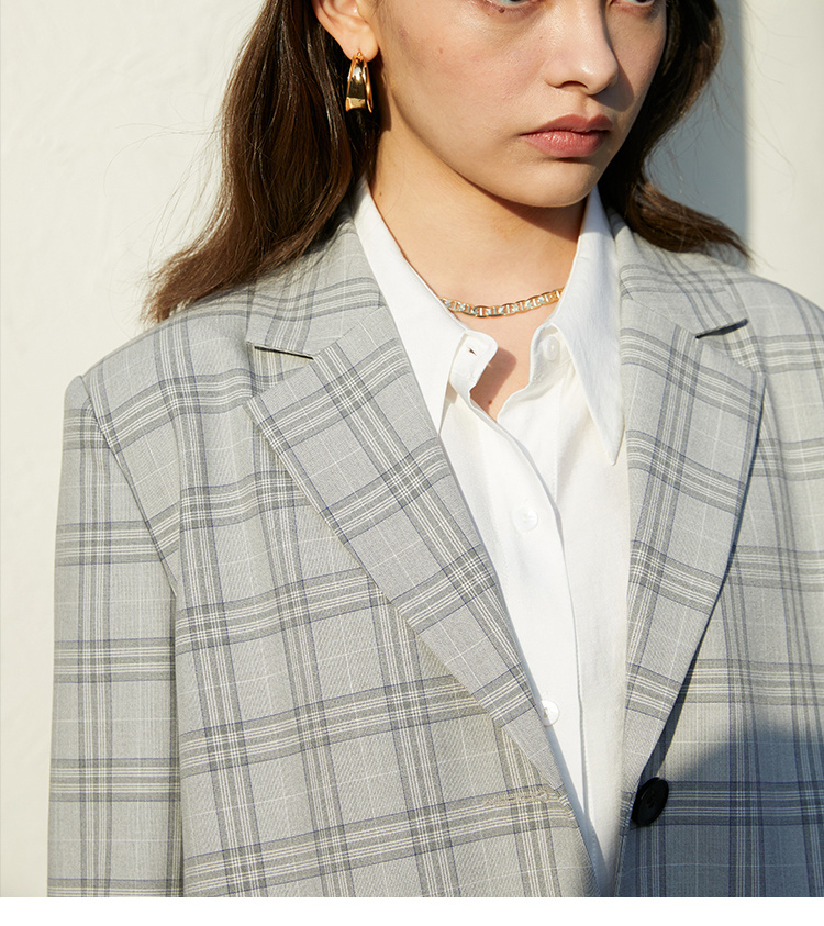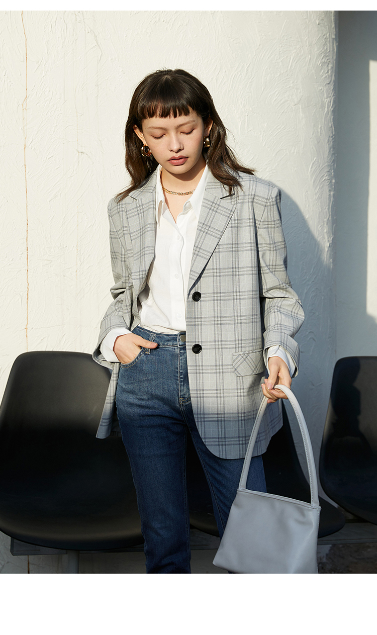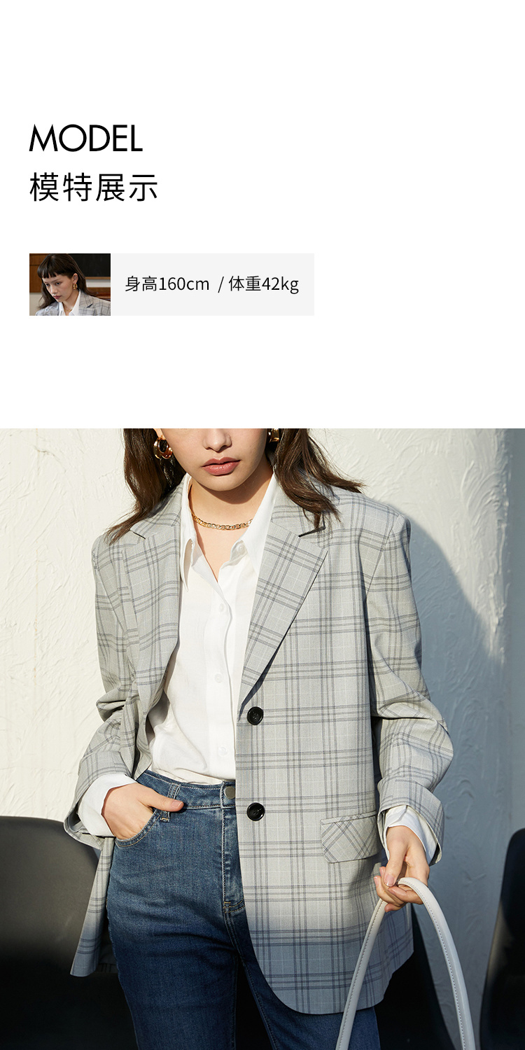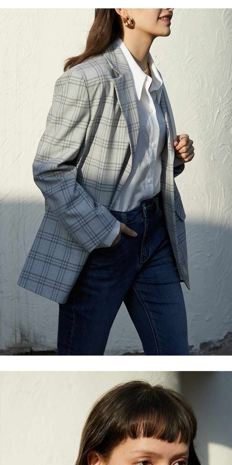 HeyDress法式格纹西装女春秋宽松显瘦休闲通勤平驳领外套上衣