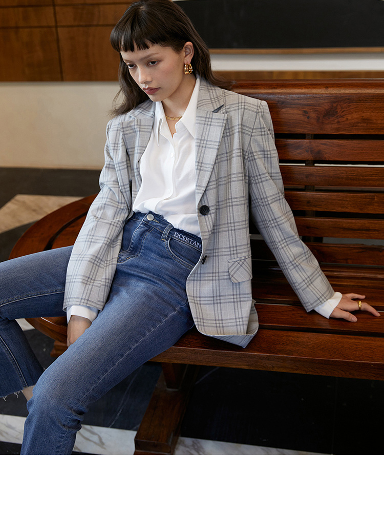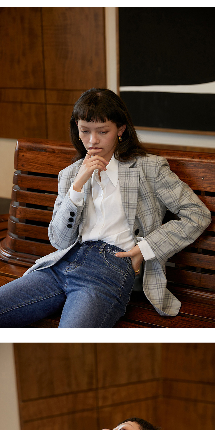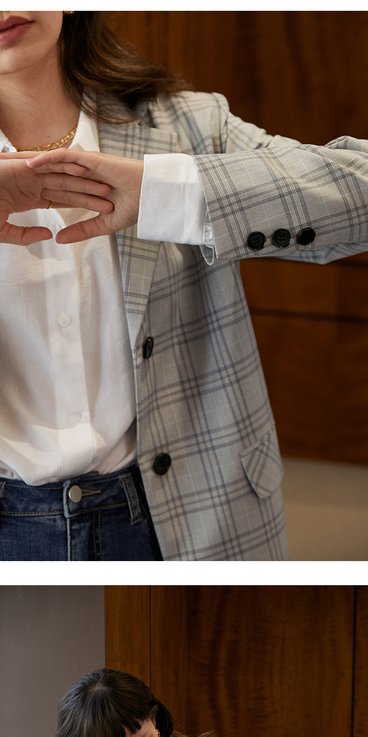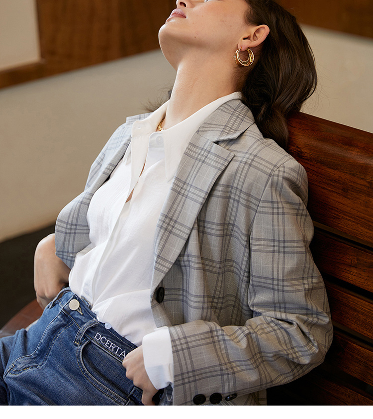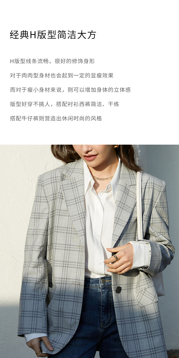 HeyDress法式格纹西装女春秋宽松显瘦休闲通勤平驳领外套上衣