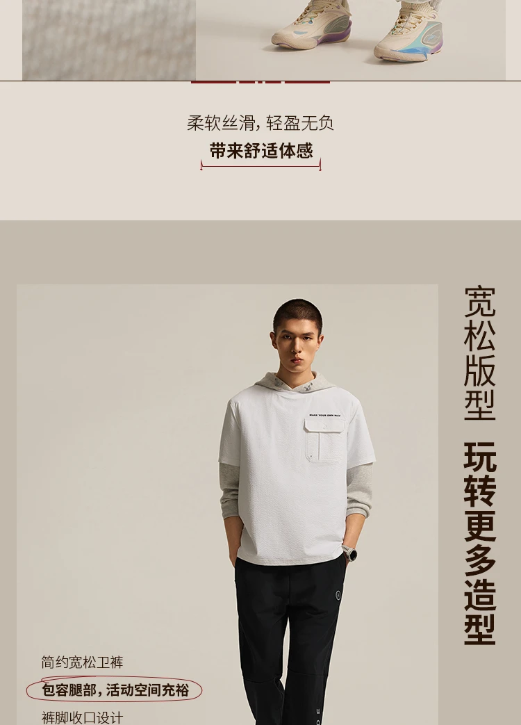 【抄底!399任选2件】李宁韦德系列男子宽松束脚卫裤AKLV023