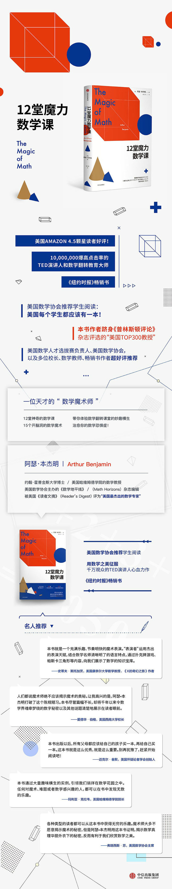 如果你已经对数学情有独钟,那么《12堂魔力数学课》将会给你带来无穷大的惊喜。如果你一直对数学兴趣平平甚至头疼不已,本杰明的魔术棒一定会把你变成一名真正的数学迷。