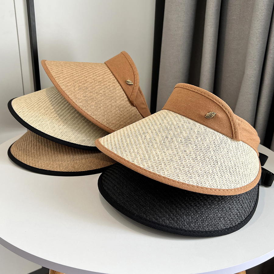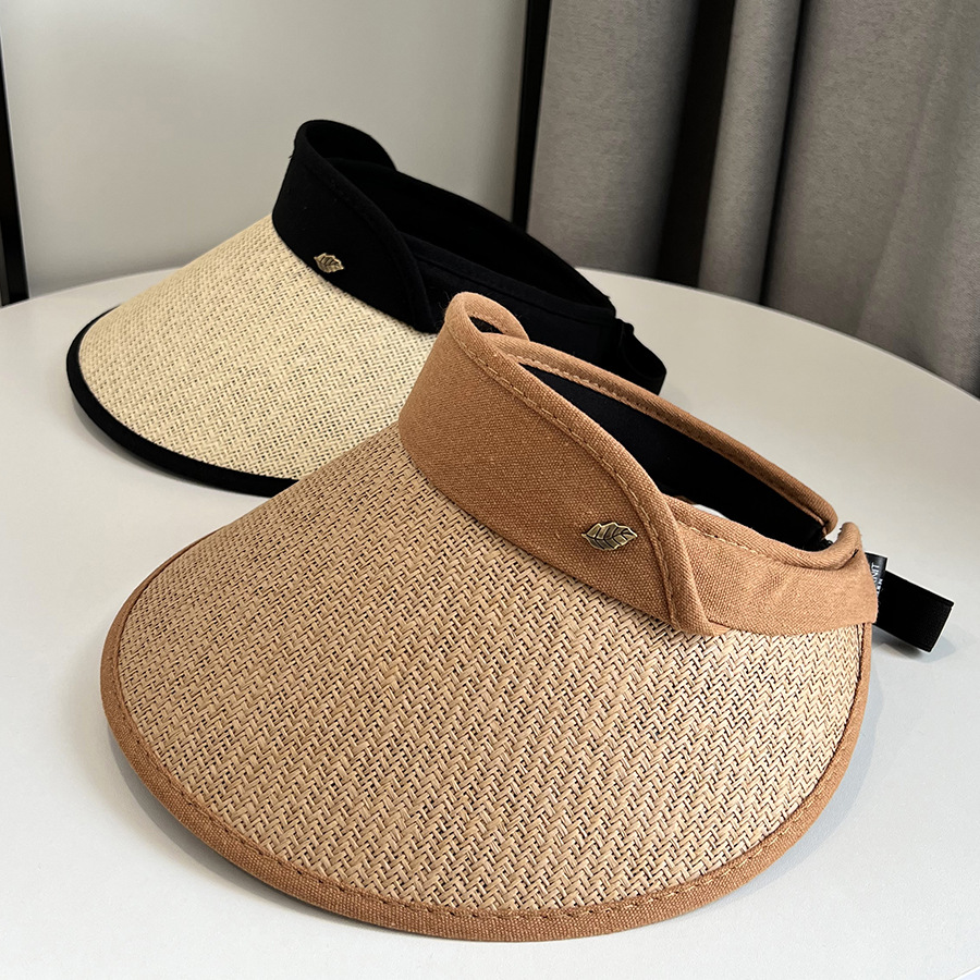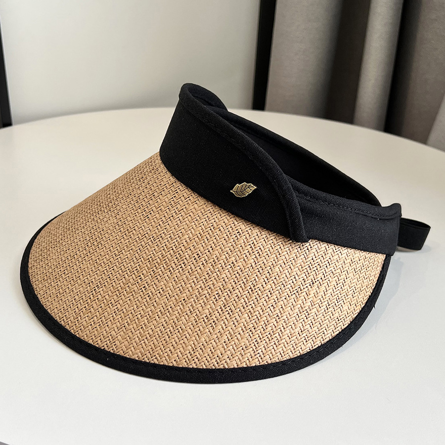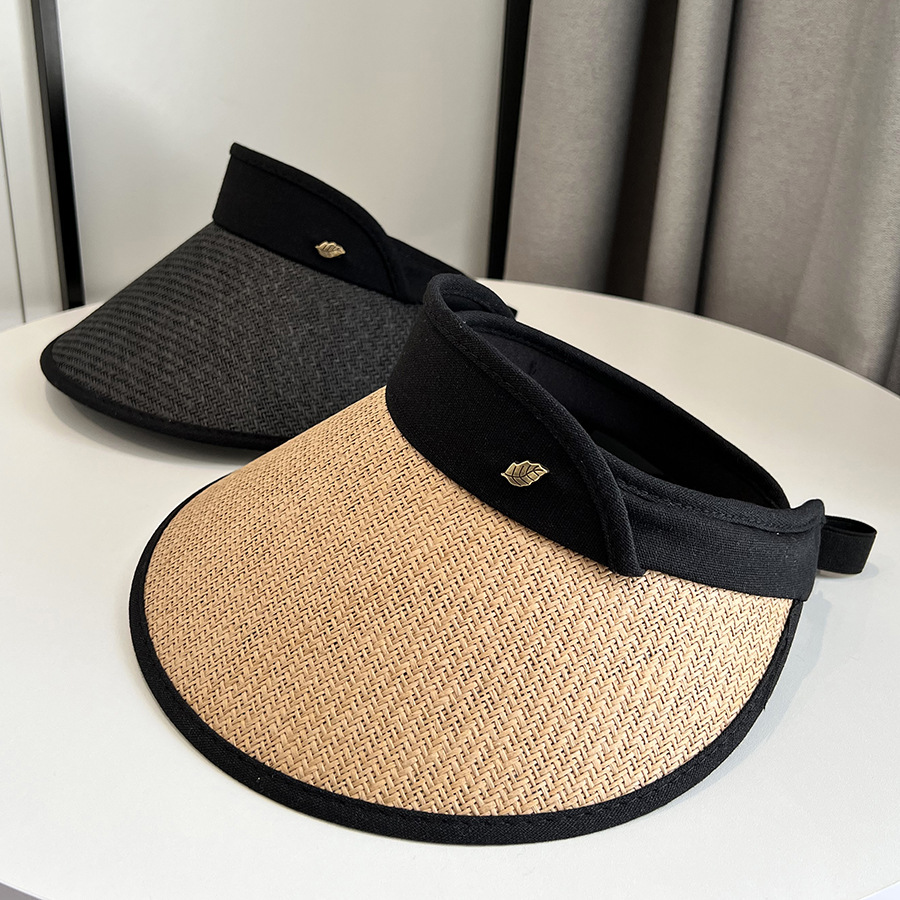 CT-T1-M1881韩国新款树叶金属标空顶帽编大沿遮阳帽透气帽子女