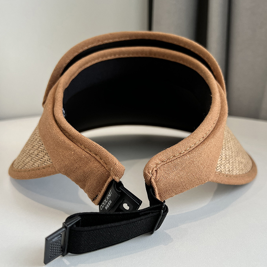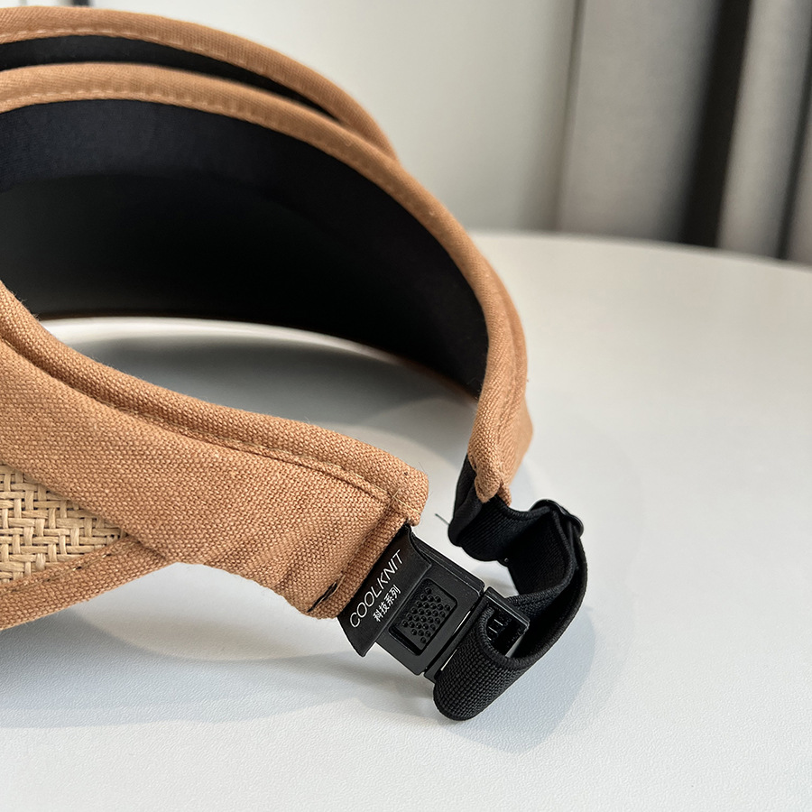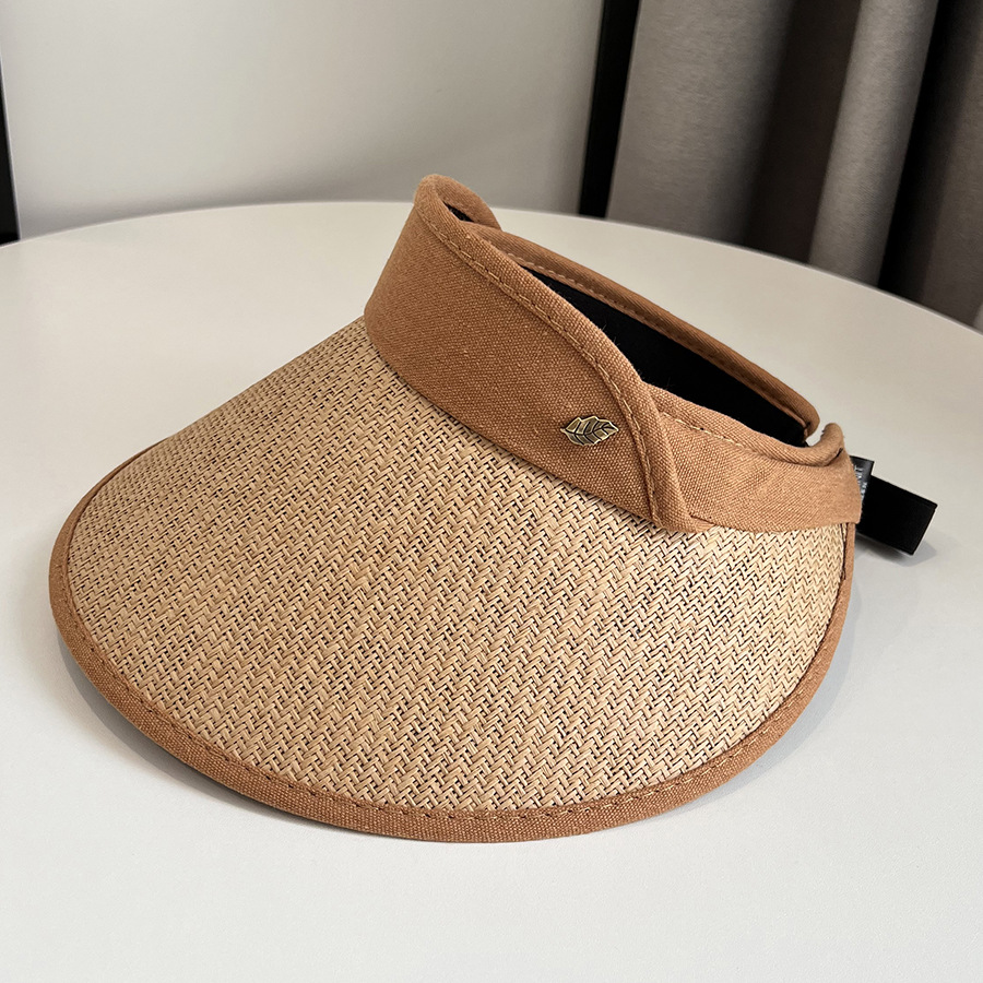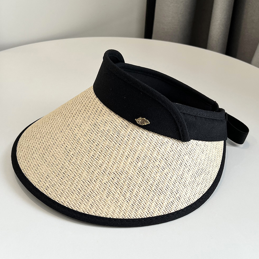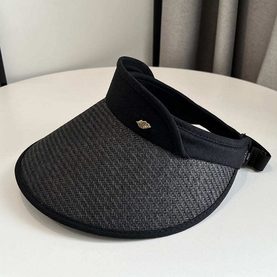 CT-T1-M1881韩国新款树叶金属标空顶帽编大沿遮阳帽透气帽子女
