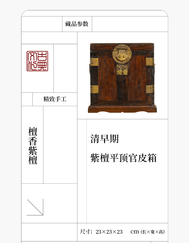 清早期 紫檀平顶官皮箱