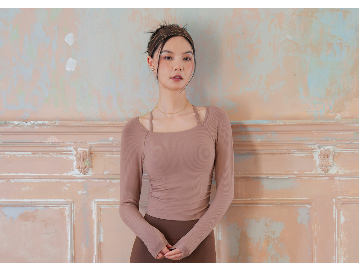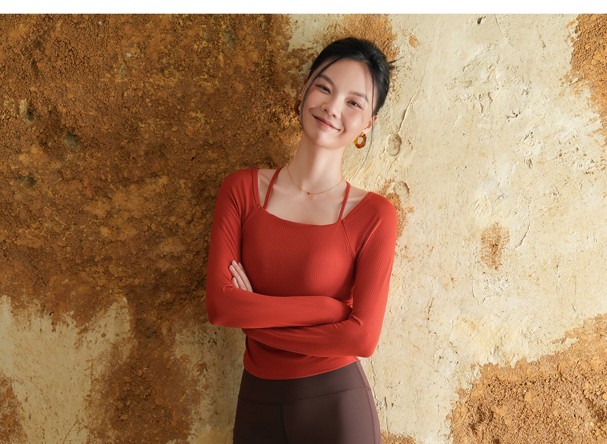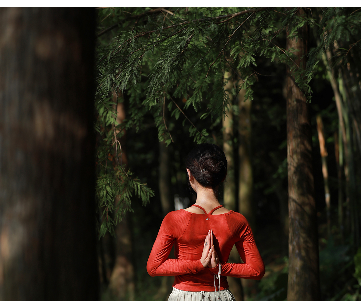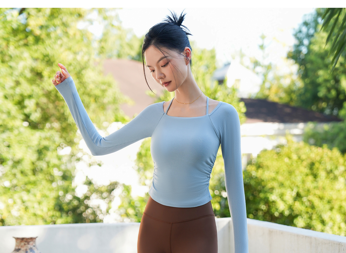 爱暇步秋冬新款新中式瑜伽服女套装长袖带胸垫专业普拉提训练上衣