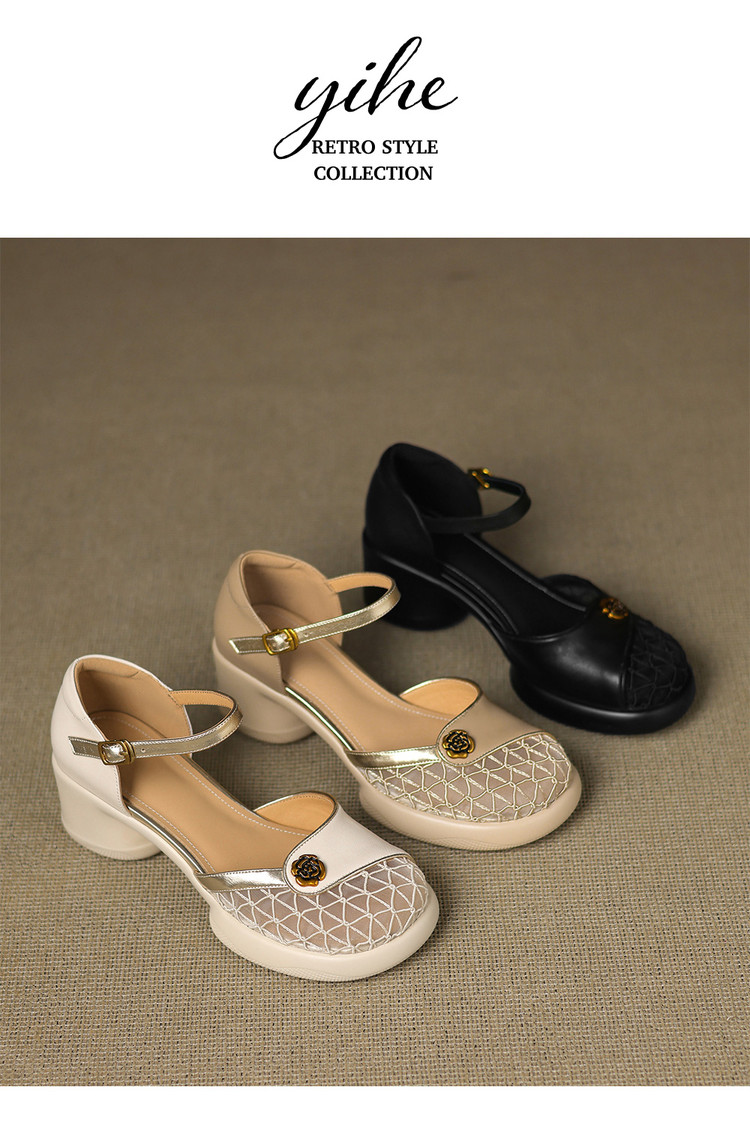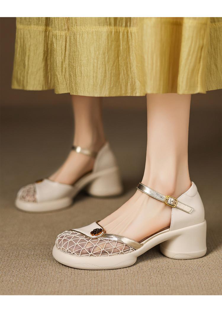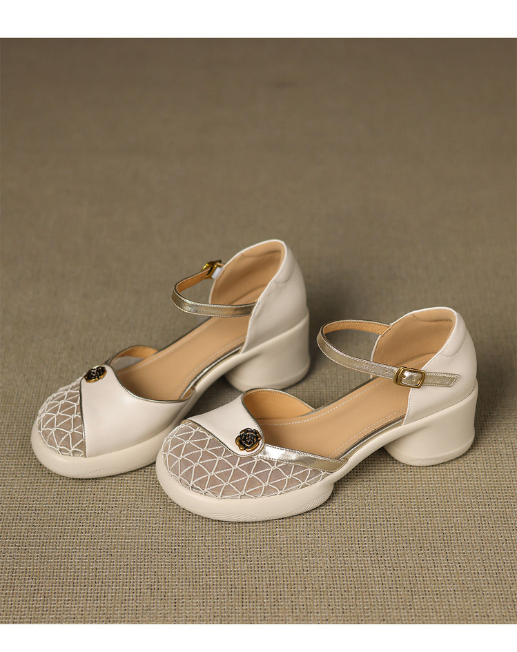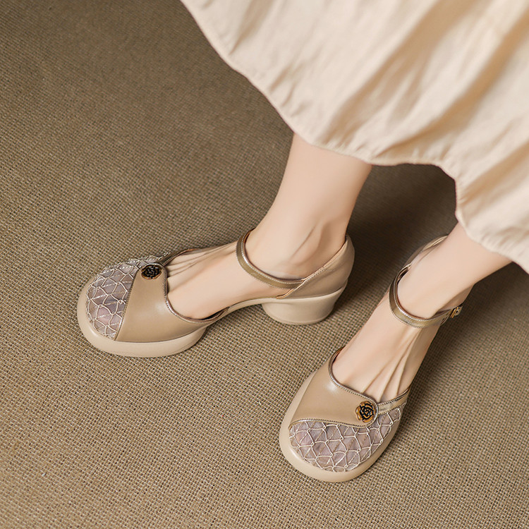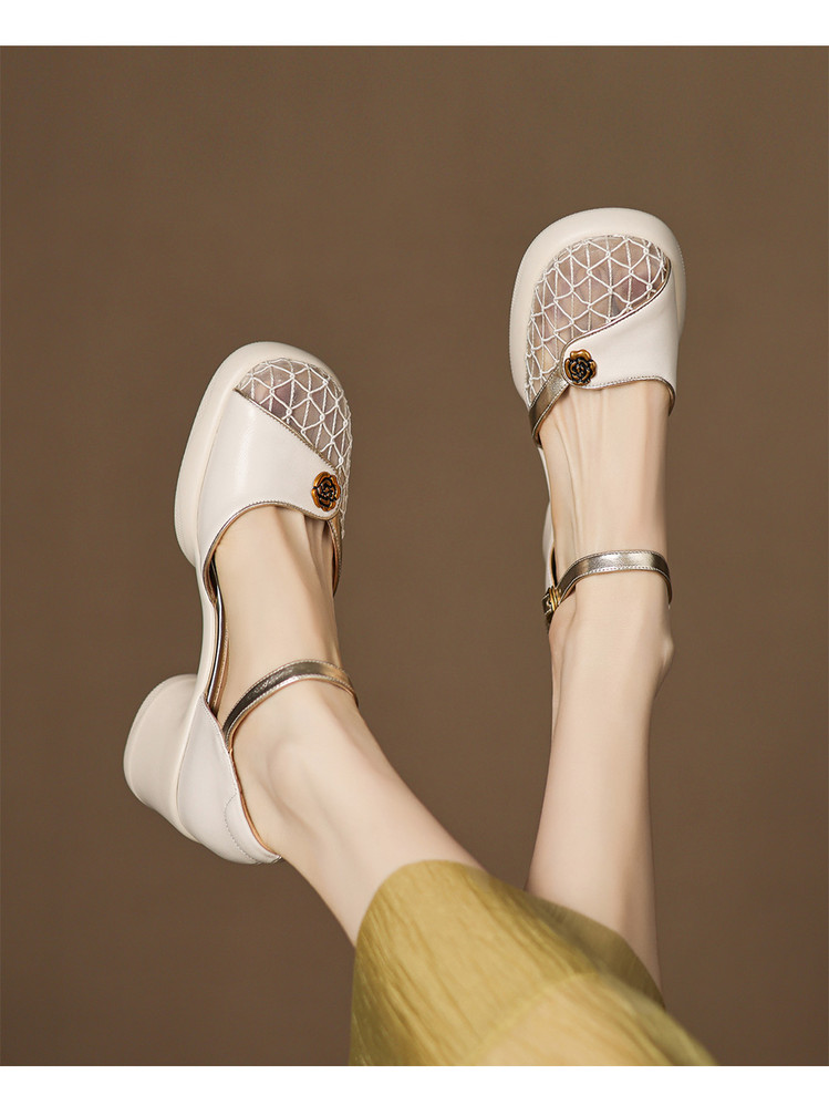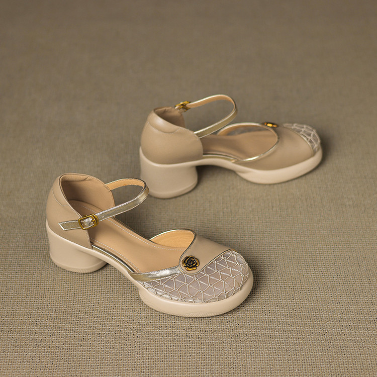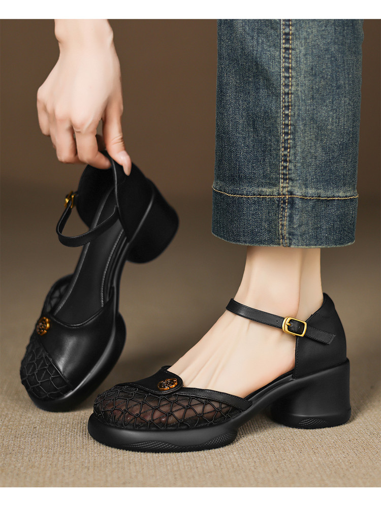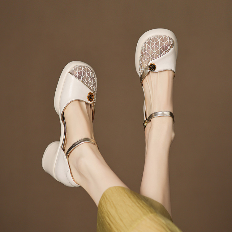 【预售5天】轻软舒适!仙女风透气网纱粗跟包头凉鞋女新款真皮百搭厚底高跟鞋ZYY&A1228