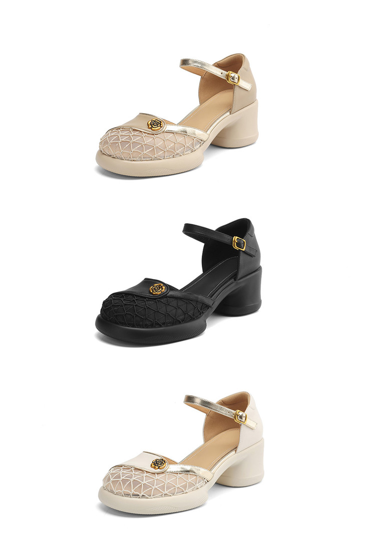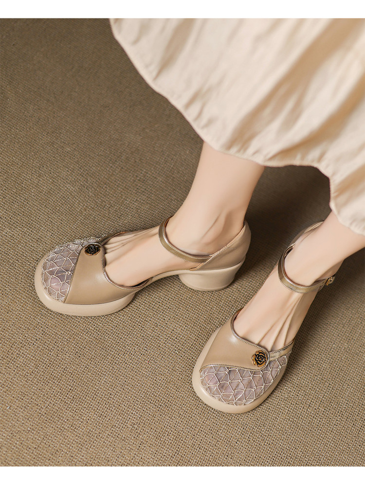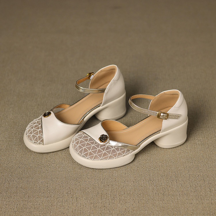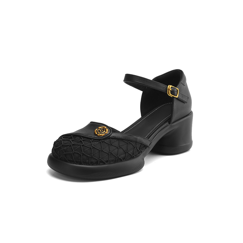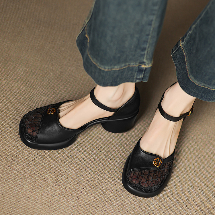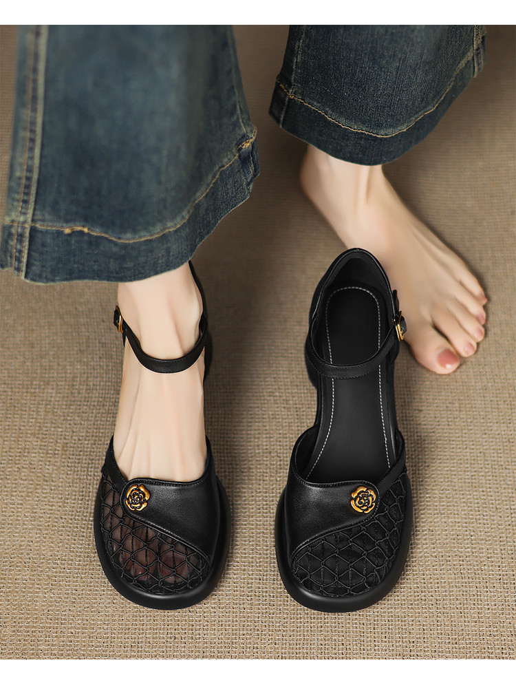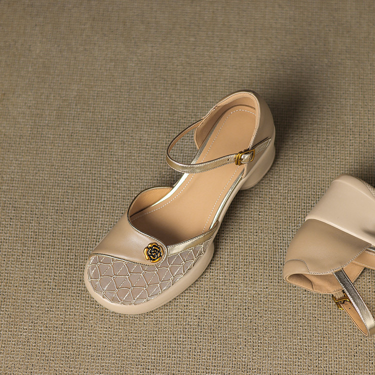 【预售5天】轻软舒适!仙女风透气网纱粗跟包头凉鞋女新款真皮百搭厚底高跟鞋ZYY&A1228