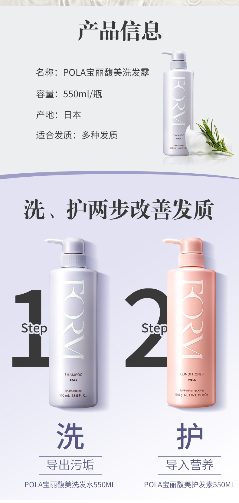 日本POLA 馥美修护洗发水无硅油清爽控油柔顺滋养 550ml