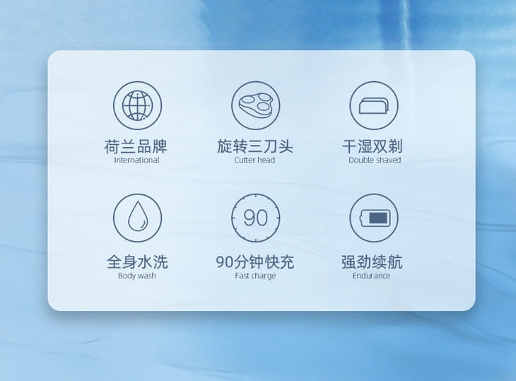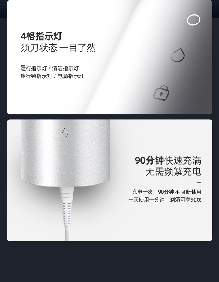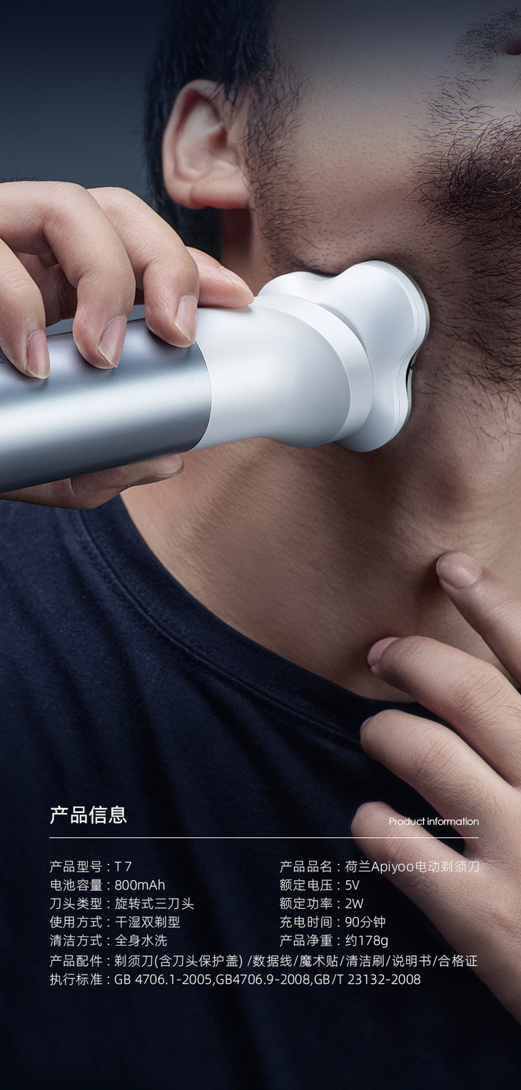 艾优(Apiyoo)新款 可全身水洗干湿双用 旋转三刀头 长续航T7剃须刀